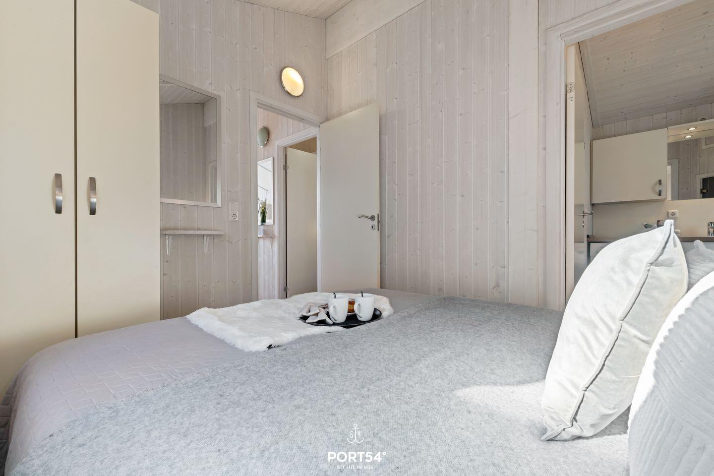 Das Ferienhaus verfügt über zwei Schlafzimmer, die jeweils mit zwei zusammengeschobenen Einzelbetten (zusammen 160x200?cm) ausgestattet sind. Die ruhige und naturnahe Farbgestaltung schafft eine angenehme, entspannte Atmosphäre für erholsame Nächte. Im Wohnzimmer findest du eine ausziehbare Schlafcouch (140 x 190?cm), die Platz für zwei weitere Personen bietet – ideal für Kinder oder Freunde. Bettwäsche und Handtücher können optional hinzugebucht werden.