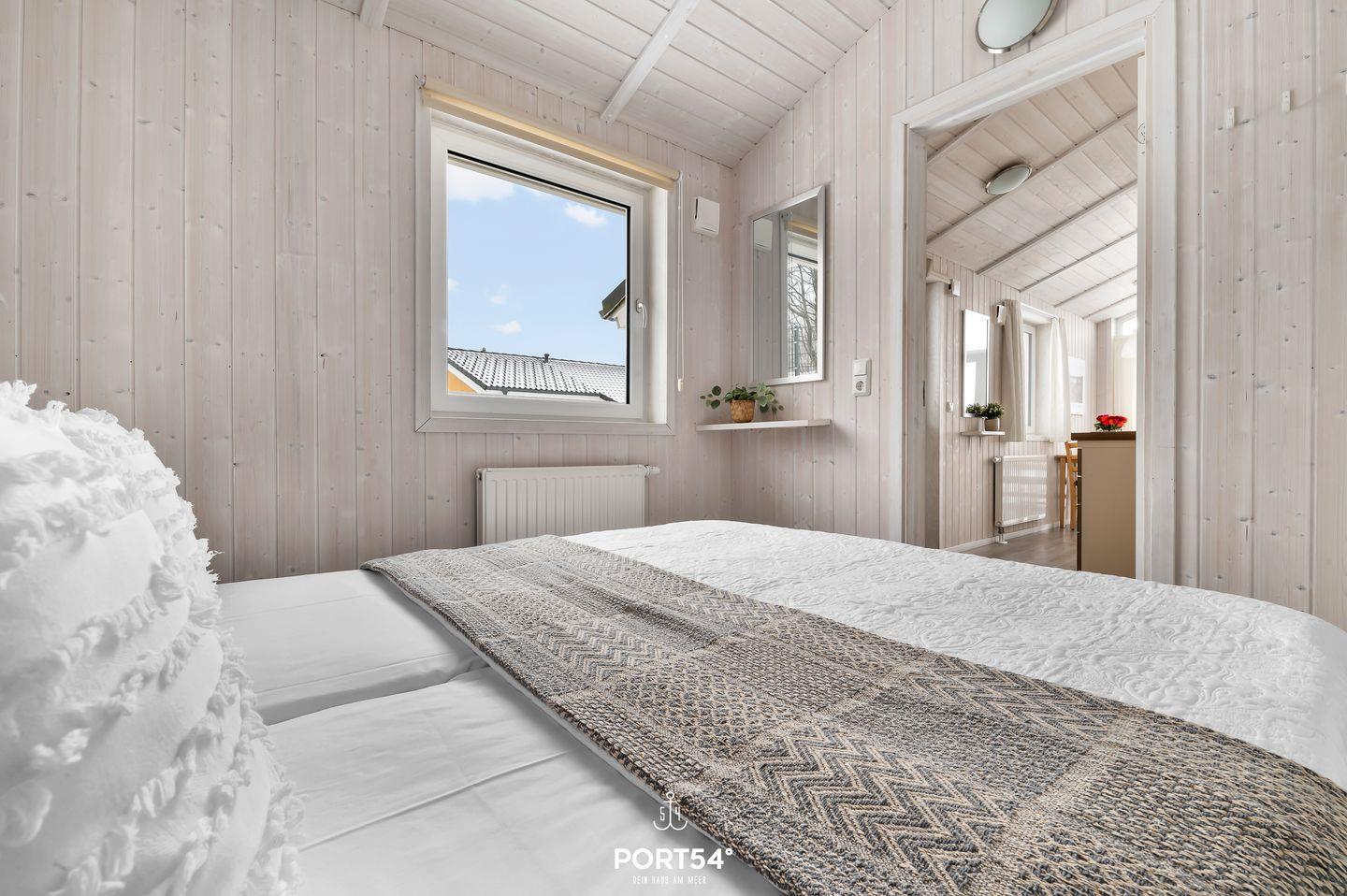 Das Schlafzimmer bietet mit zwei zusammengeschobene Einzelbetten (zusammen 180x200cm) einen behaglichen Rückzugsort für zwei Erwachsene. Natürliche Materialien und dezente Farben sorgen für ein entspannendes Ambiente. Für zusätzliche Gäste steht im Wohnbereich eine ausziehbare Schlafcouch (140 x 190 cm) bereit, die für eine dritte Person – ideal für Kinder oder Freunde – bequem Platz bietet. *** Bettwäsche und Handtücher können optional hinzu gebucht werden***