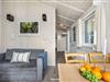 Der offene Wohnbereich bildet das Herzstück des Hauses. Mit seiner gemütlichen Couch, rustikalen Holzelementen und einem Bio-Ethanol-Kaminofen lädt er zu entspannten Abenden in wohliger Atmosphäre ein. Große Fenster holen die umliegende Natur ins Innere und lassen den Raum lichtdurchfluten. Hier können Sie auf der Couch entspannen, ein Buch lesen oder bei einer Tasse Tee den Ausblick genießen. Ein Flachbild-TV und eine Musikanlage sorgen für zusätzliche Unterhaltung.