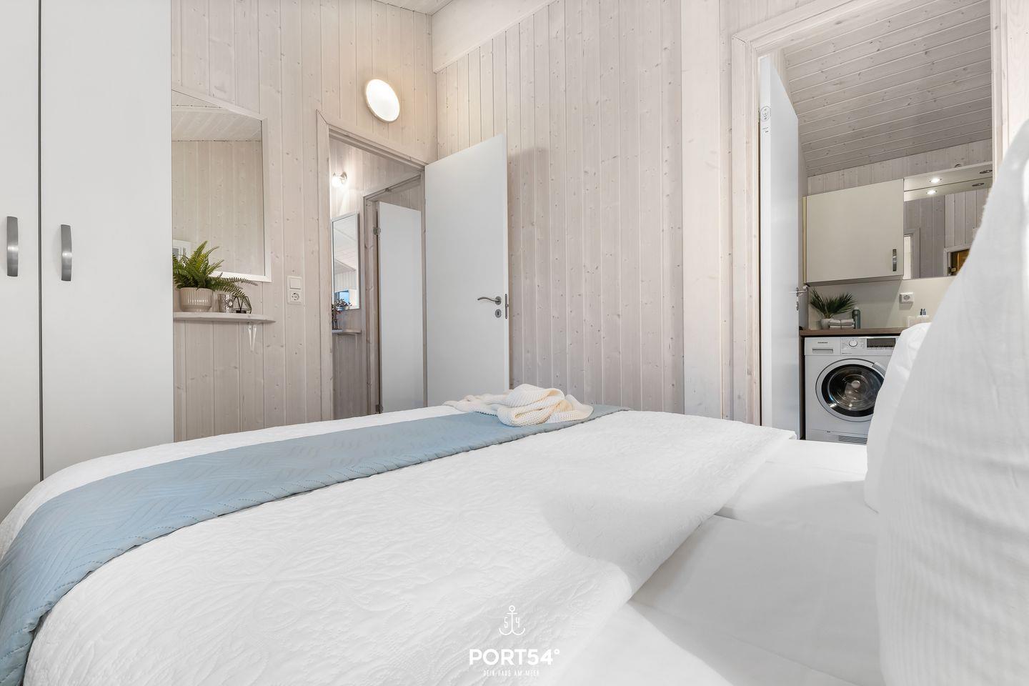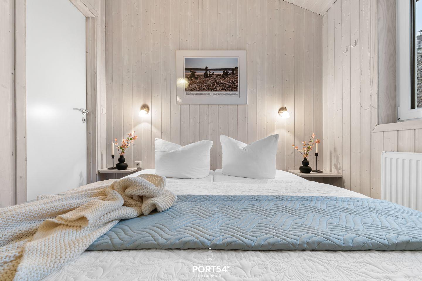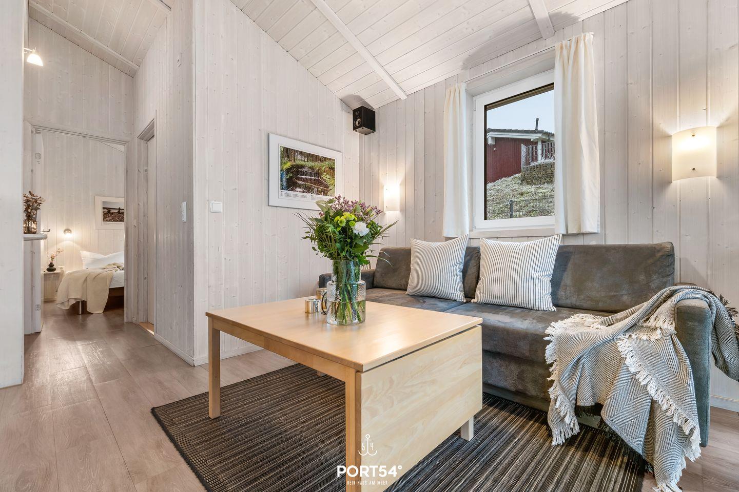 Das Ferienhaus verfügt über zwei Schlafzimmer, die jeweils mit zwei zusammengeschobenen Einzelbetten (zusammen 160x200?cm) ausgestattet sind. Die ruhige und naturnahe Farbgestaltung schafft eine angenehme, entspannte Atmosphäre für erholsame Nächte. Im Wohnzimmer findest du eine ausziehbare Schlafcouch (140 x 190?cm), die Platz für zwei weitere Personen bietet – ideal für Kinder oder Freunde. Bettwäsche und Handtücher können optional hinzugebucht werden.