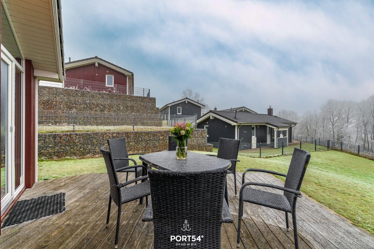 Durch die erstklassige und exponierte Lage im Ferienpark schweift der Blick vom Ferienhaus über den Matthias-Schmidt-Berg und die freie Natur.