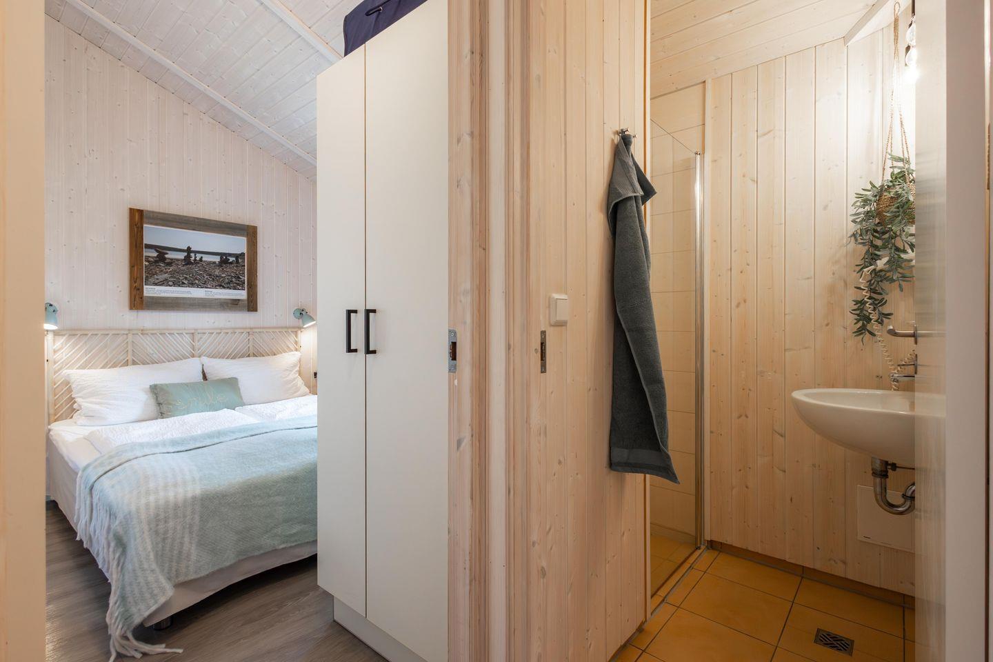Das Ferienhaus bietet insgesamt 5 Schlafzimmer: vier davon sind mit Doppelbetten (160x 200 cm) ausgestattet, während das fünfte Schlafzimmer mit zwei Einzelbetten (80 x 200 cm) für zusätzlichen Komfort sorgt. So haben sowohl Familien als auch Gruppen von Freunden ausreichend Platz und Privatsphäre. Die Schlafzimmer sind in beruhigenden, natürlichen Farben gehalten und schaffen eine entspannte Atmosphäre für erholsame Nächte.*** Bettwäsche und Handtücher können optional hinzu gebucht werden***