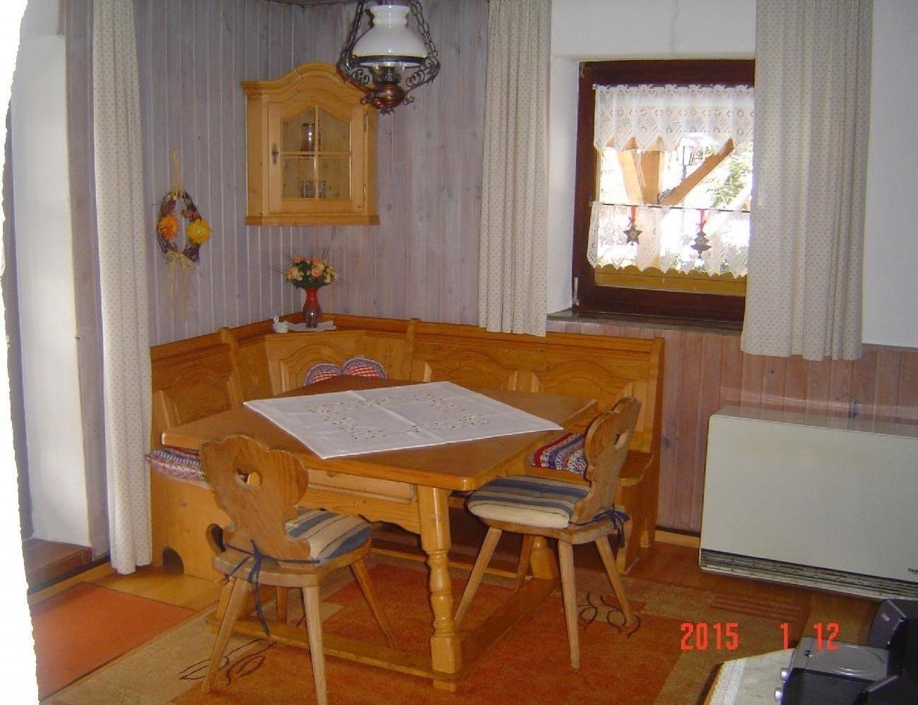 Gemütlich komplett ausgestattete Ferienwohnung im bayrischen Stil mit Fichtenmöbeln, Bauernstube mit Sofa, Terrasse ca 30 qm mit Gartenmöbeln.