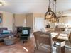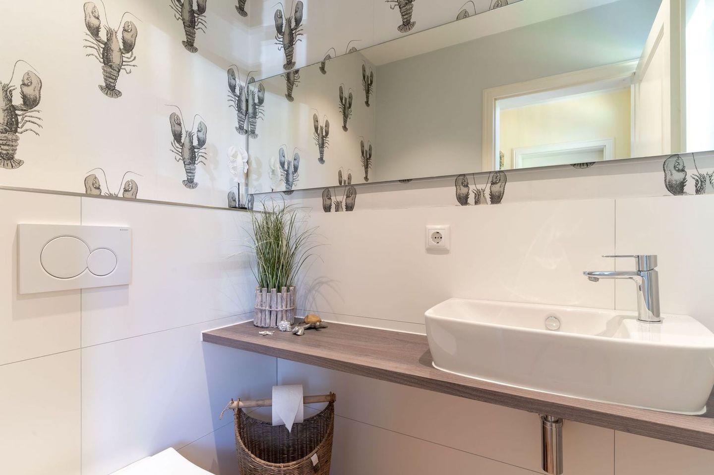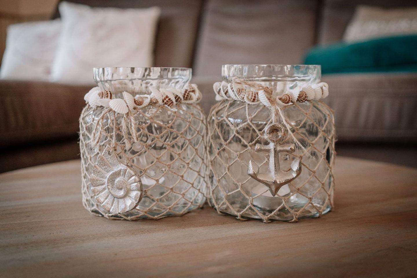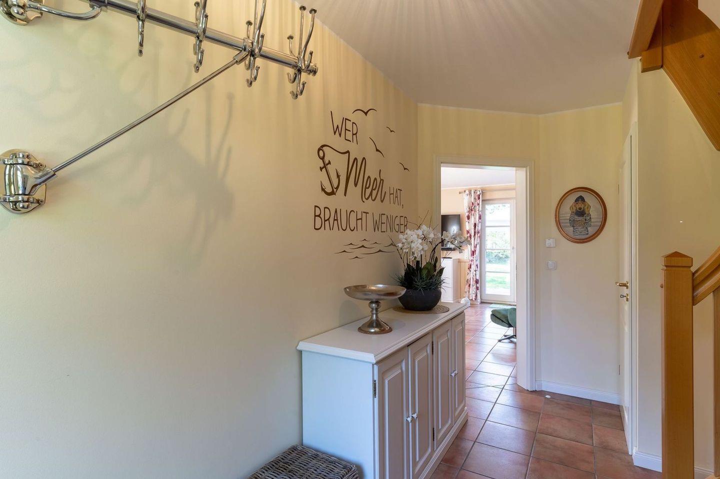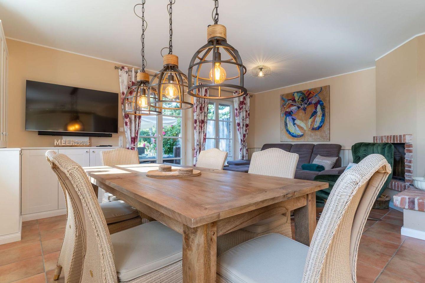 Im Erdgeschoss befindet sich der lichtdurchflutete Wohnraum mit TV, Kamin, einer offenen Küche sowie einem Essbereich. Die wunderschöne Dekoration im Style von Riviera Maison spiegelt sich in jedem Raum.