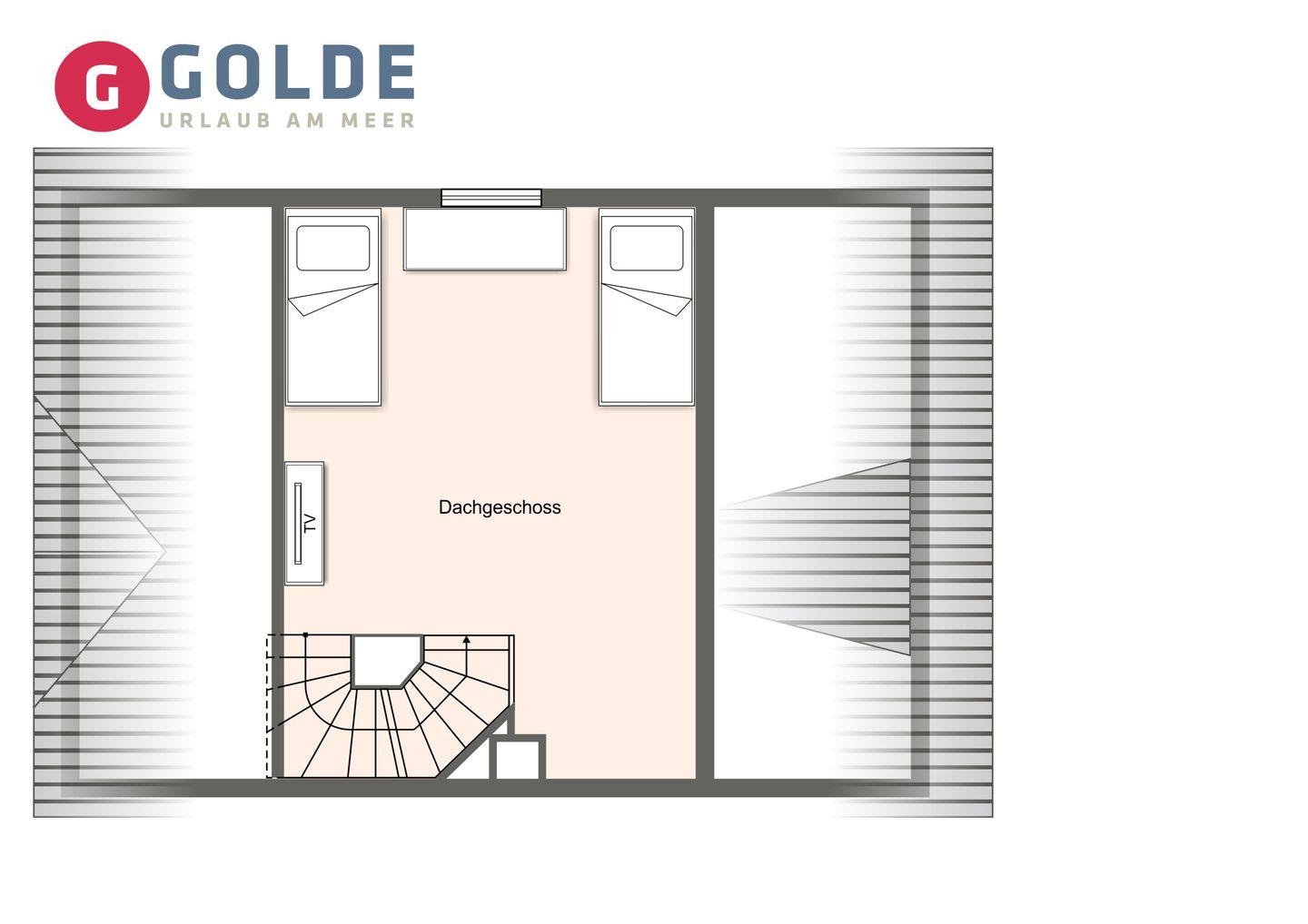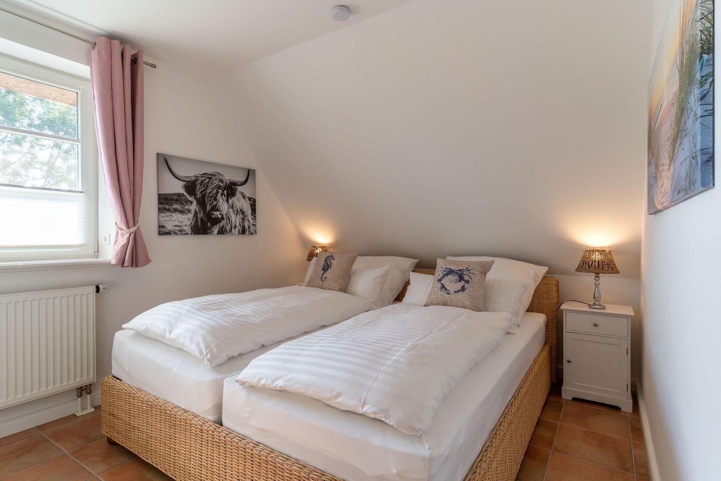 Im großzügigen Dachgeschoss befindet sich ein zusätzliches Schlafzimmer mit 2 Einzelbetten und einem TV.