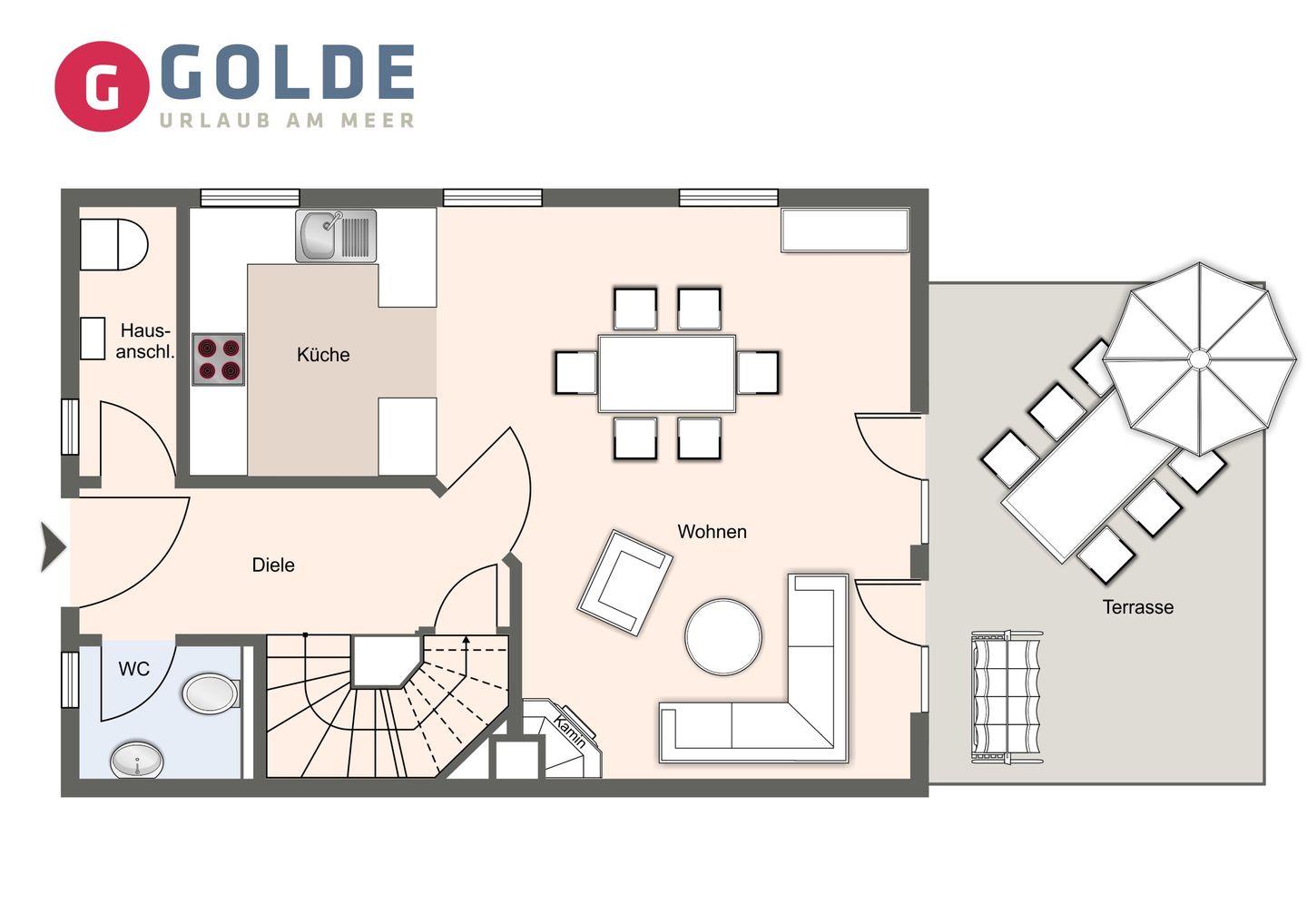 Die wunderschöne Haushälfte unter Reet verfügt über ca. 100 m² Wohnfläche und bietet Platz für 5 Personen.