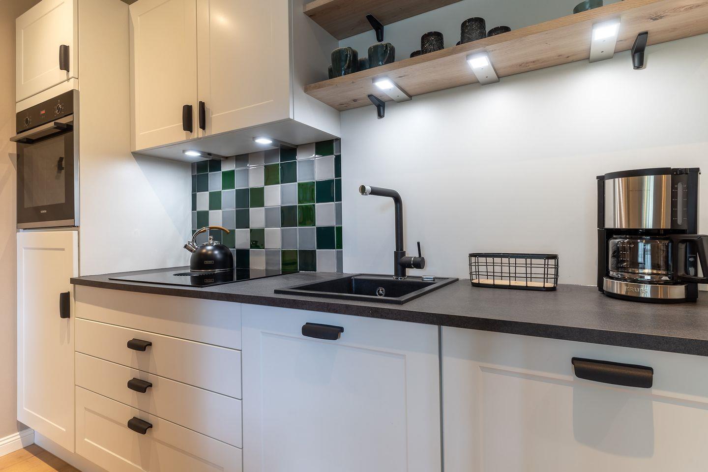 Der lichtdurchflutete Wohnraum mit einer offenen Wohnküche und einem gemütlichen Essbereich bietet jeden Komfort. Die Küche ist voll ausgestattet und verfügt über hochwertige Elektrogeräte.
