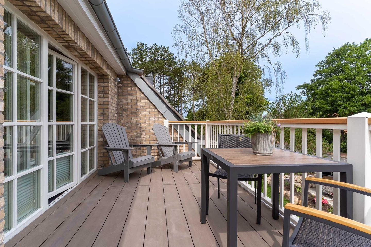 Es bietet Platz für 1 - 2 Personen im 1. Obergeschoss mit Balkon.