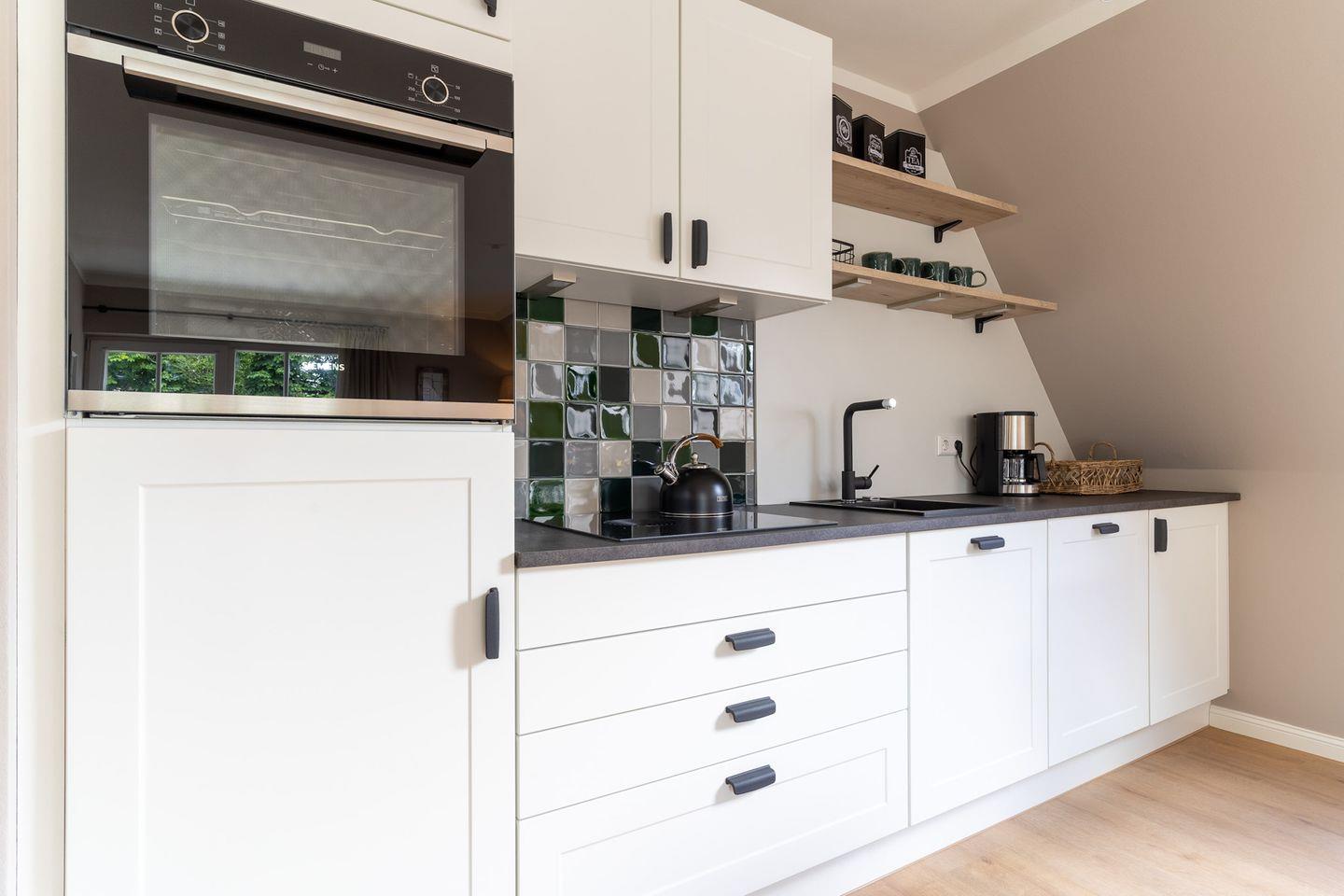 Der lichtdurchflutete Wohnraum mit einer offenen Wohnküche und einem gemütlichen Essbereich bietet jeden Komfort. Die Küche ist voll ausgestattet und verfügt über hochwertige Elektrogeräte.