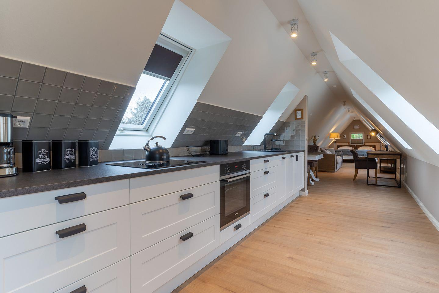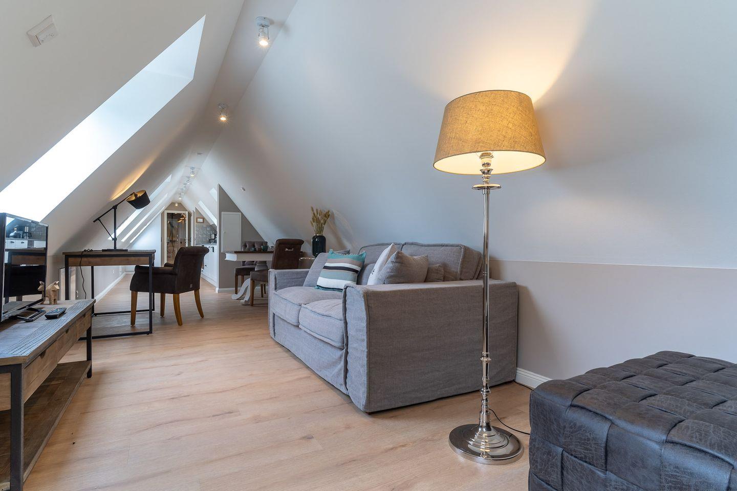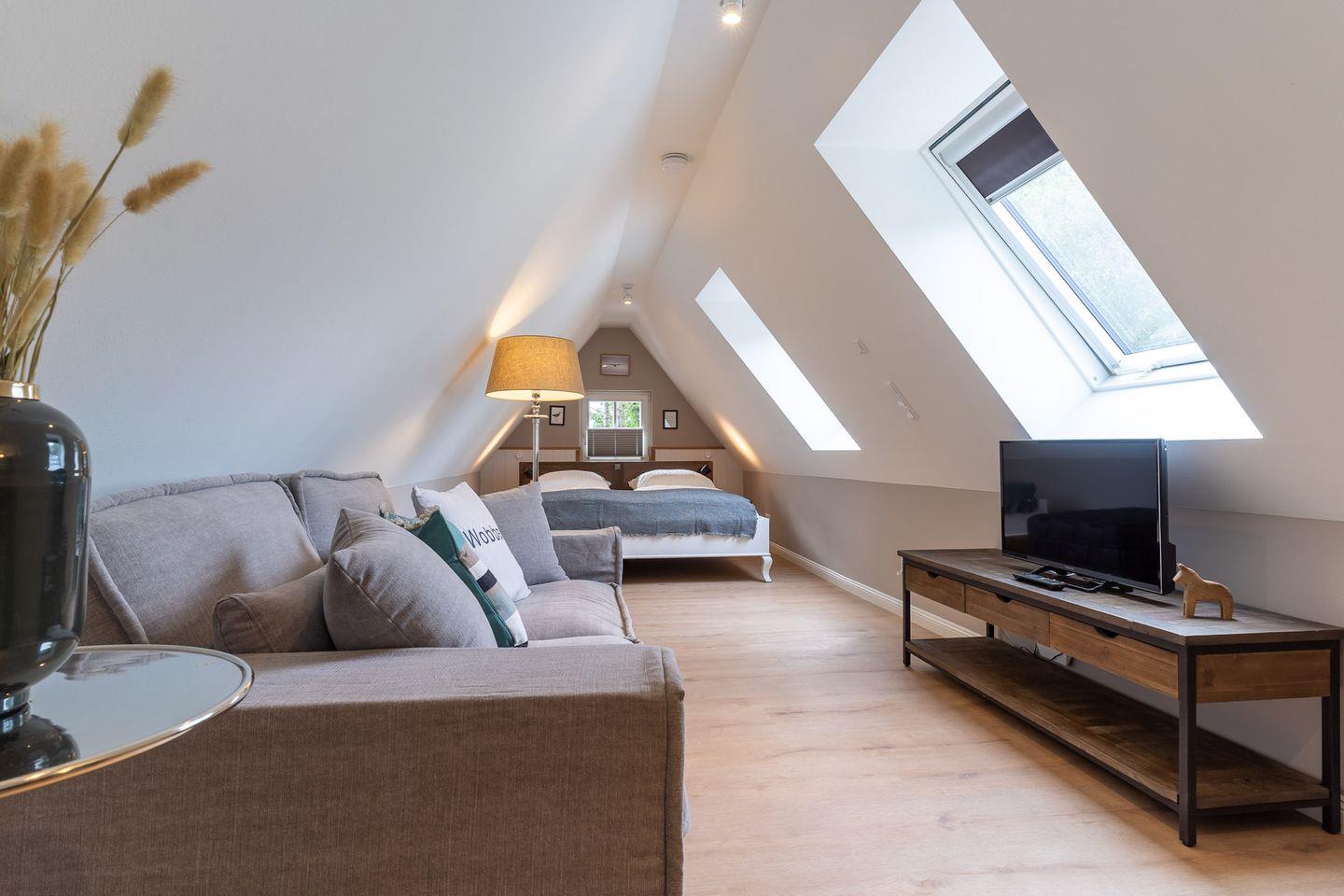 Das luxuriöse Loft Appartement "Wobbe" in dem "Haus Böhl" liegt im Dachgeschoss und verfügt über ca. 40m² Wohnfläche. Es bietet Platz für 1-2 Personen.
