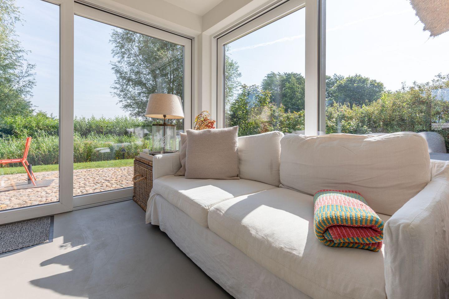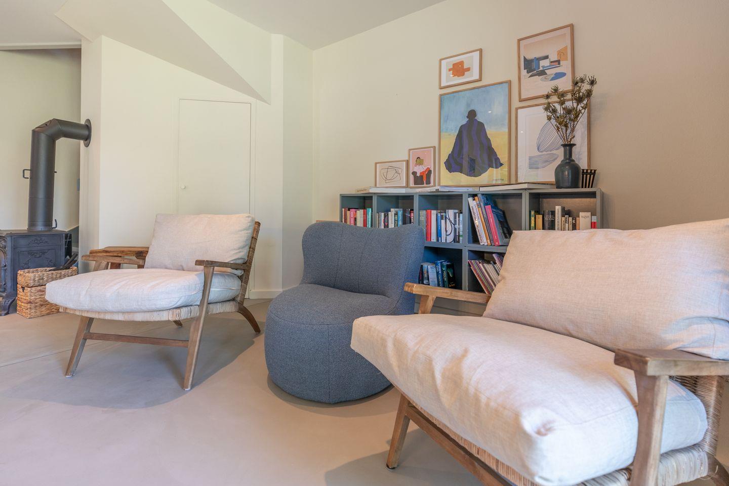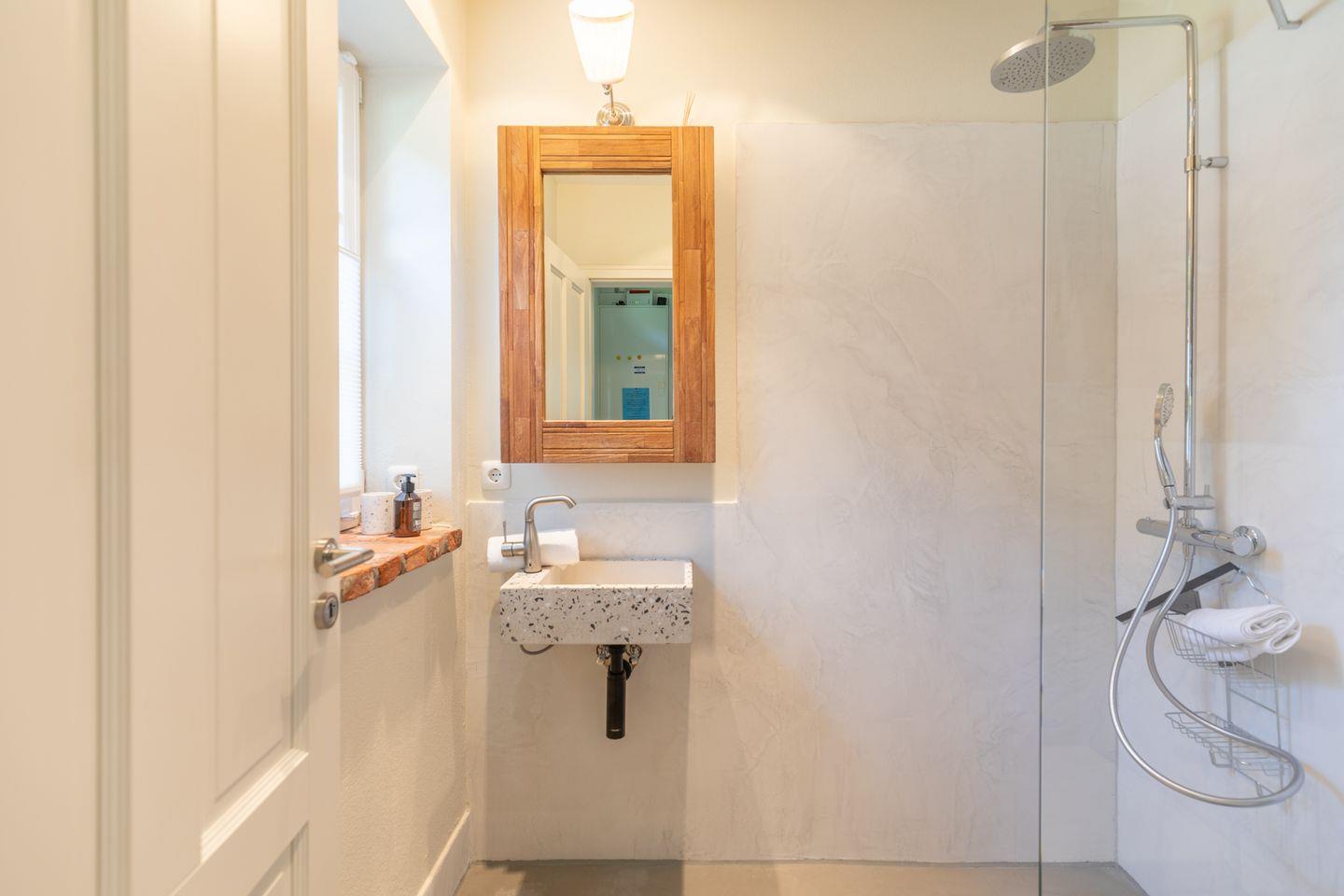 Bei gutem Wetter lassen sich die ersten Sonnenstrahlen des Tages auch auf einer der zwei möblierten Terrassen genießen. Der angrenzende Garten mit Teich und zusätzlichen Sitzgelegenheiten ist ebenfalls liebevoll gestaltet.