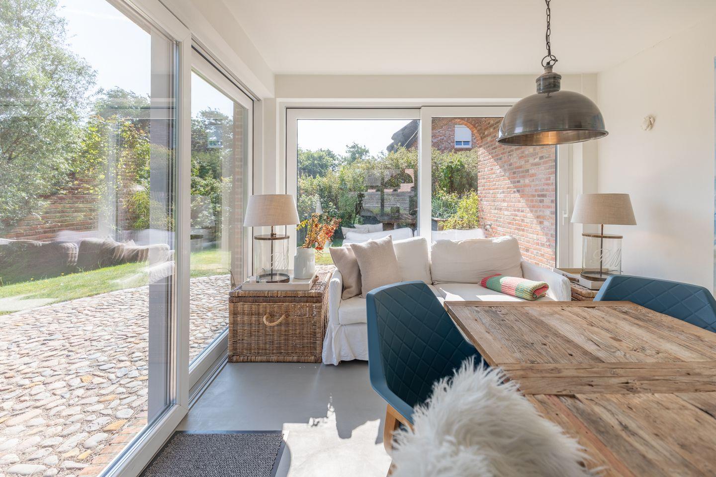 Vom Eingangsbereich mit Garderobe gelangen Sie in den großzügigen Wohn-Essbereich mit offener Küche. Das Raumangebot, die Qualität und umfangreiche Ausstattung der Küche ermöglichen eine gemeinsame Zubereitung der Speisen und geselliges Miteinander. Nehmen Sie Platz am Esstisch im Wintergarten mit Blick ins Grüne und genießen ein ausgiebiges Frühstück mit frischen Brötchen aus der nahegelegenen Dorfbäckerei.