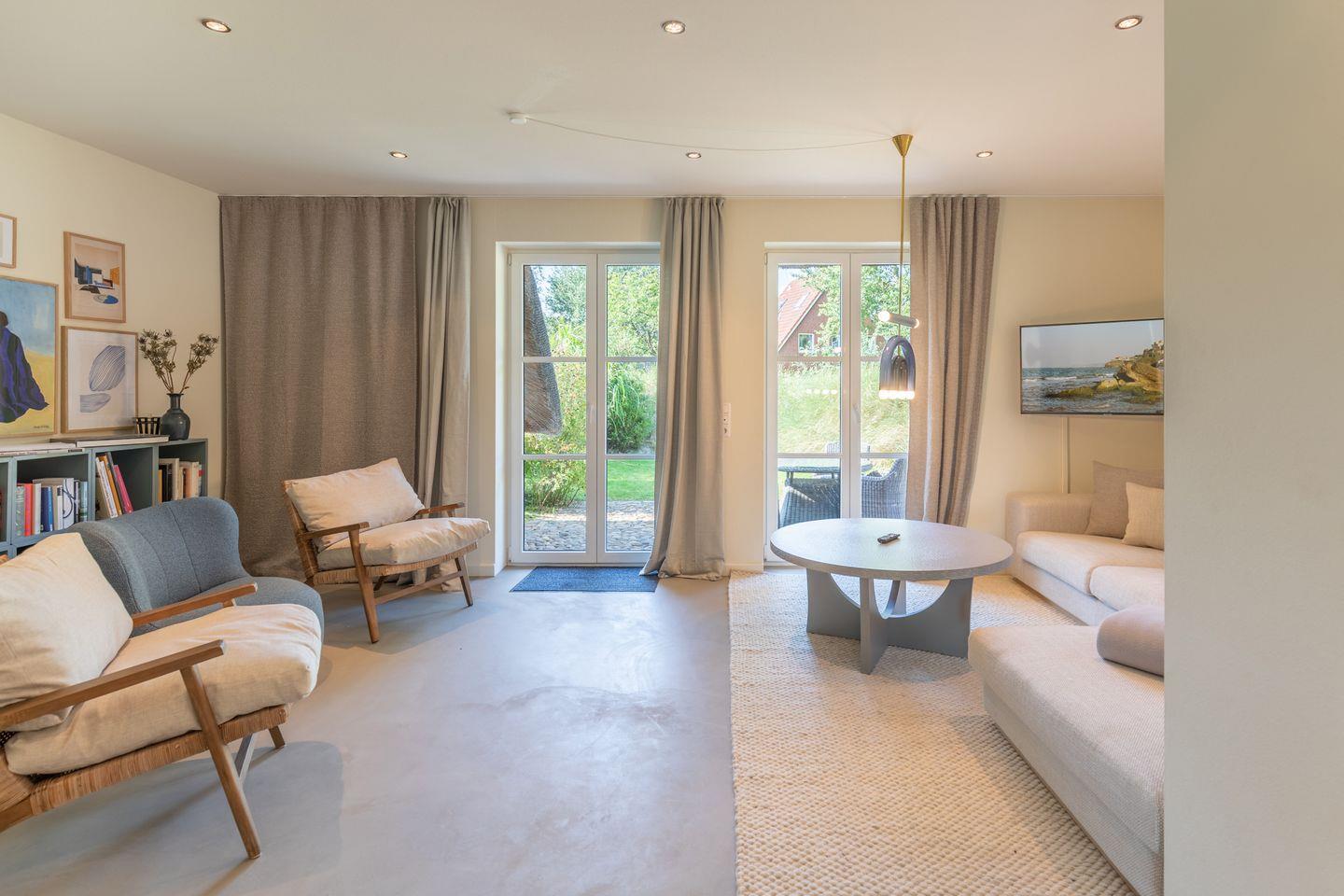 Sollten Sie mit mehr als 6 Personen verreisen wollen, können Sie die angrenzende Doppelhaushälfte "Kleine Lachmöwe" (Verfügbarkeit vorausgesetzt) für bis zu 4 Personen gerne dazu buchen: In diesem Fall wird der Zugang aus der "Kleinen Lachmöwe" auf die Dachterrasse des Hauses geöffnet und so beide DHH über die gemeinschaftlich nutzbare Dachterrasse miteinander verbunden.