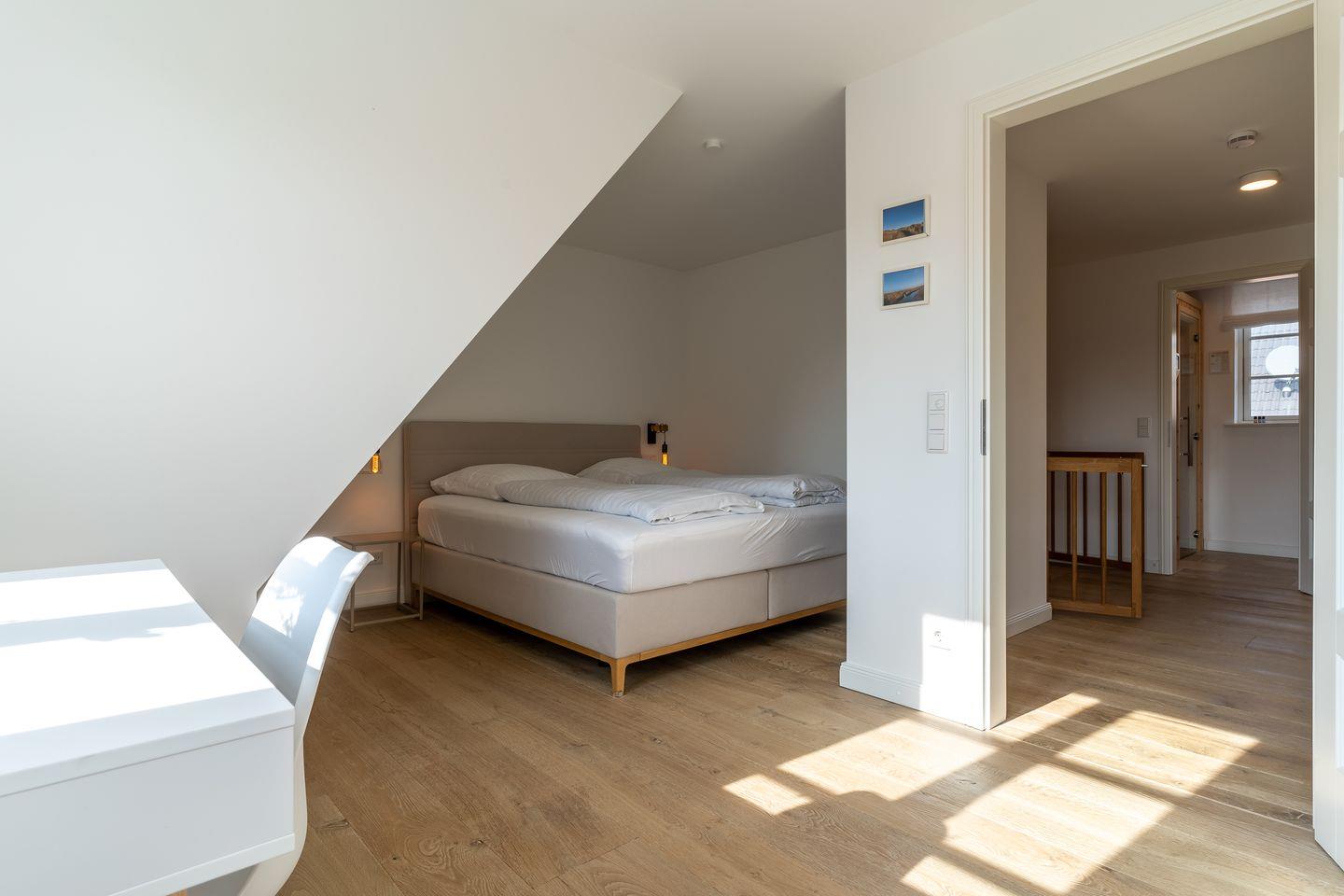 Abends erholen Sie sich in einem der drei Schlafzimmer mit Doppelbetten (180x200cm) und Kleiderschränken. In einem der Schlafzimmer befindet sich ein kleiner Arbeitsplatz.