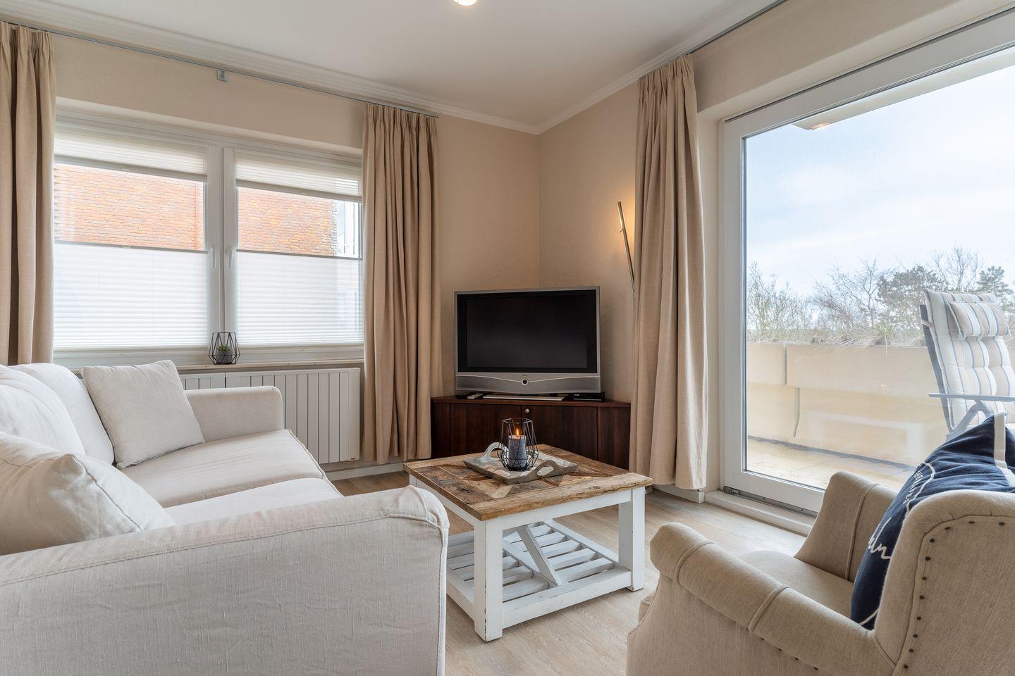 Die gesamte Wohnung ist mit sehr exclusiven Möbeln von Riviera Maison eingerichtet. Ein gemütliches Wohnzimmer mit offener Wohnküche und großzügigen Esstisch laden zum Chillen ein. Das Schlafzimmer mit 160er Doppelbett und Flatscreen TV sorgen für ruhevolle Erholung.