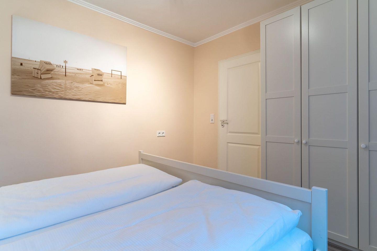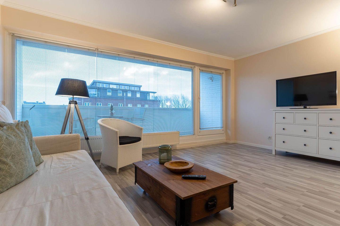 Das App. "Boje 64" in der Appartementanlage Luv & Lee verfügt über ca. 50 m² Wohnfläche und bietet Platz für 2+2 Personen. Die Wohnung befindet sich im 2. Obergeschoss mit einem großzügige Wohnraum mit TV und einer kleinen modernen Wohnnische. Die Wohnräume sind hell und mit modernen Möbeln ausgestattet. An den geräumigen Flur schließen sich ein großzügiges Duschbad, sowie ein Schlafzimmer mit einem Doppelbett an. Zusätzlich gibt es im Wohnzimmer ein gemütliches Schlafsofa für zwei Personen. Vom Wohnzimmer gelangen Sie auf einen großzügigen Balkon mit seitlichen Teilmeerblick. Diese zentrale Lage, geprägt durch Restaurants, Bars, Ladengeschäfte und die direkte Nähe zur Seebrücke bis zum Strand bringt Sie sofort in Urlaubsstimmung.