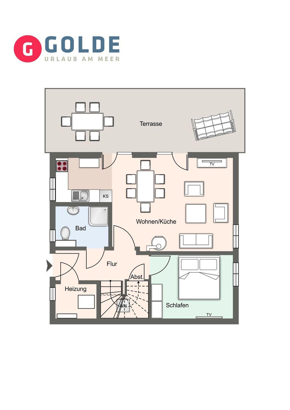 Die wunderschöne Haushälfte unter Reet verfügt über ca. 95 m² Wohnfläche und bietet Platz für 6 Personen.