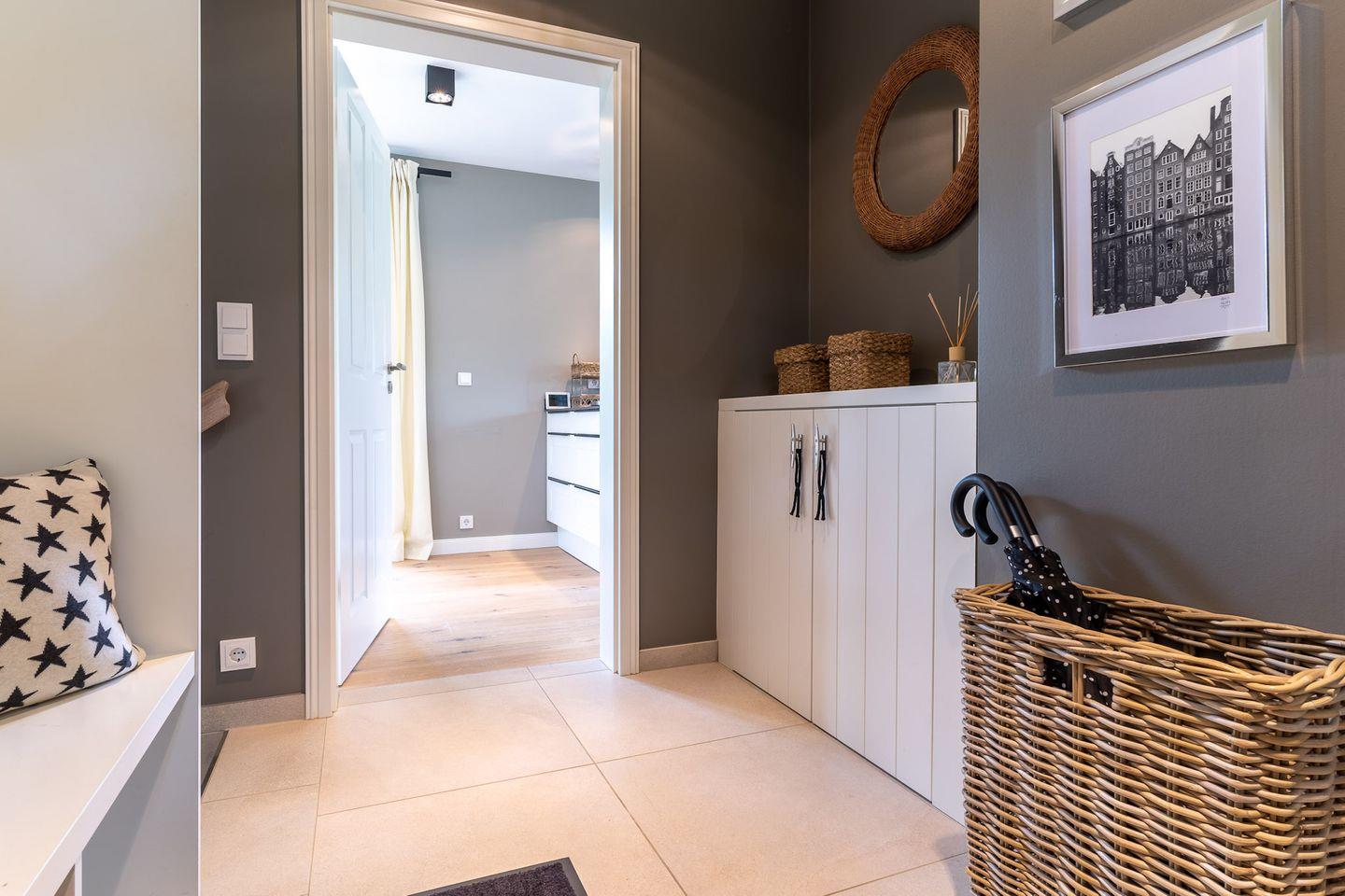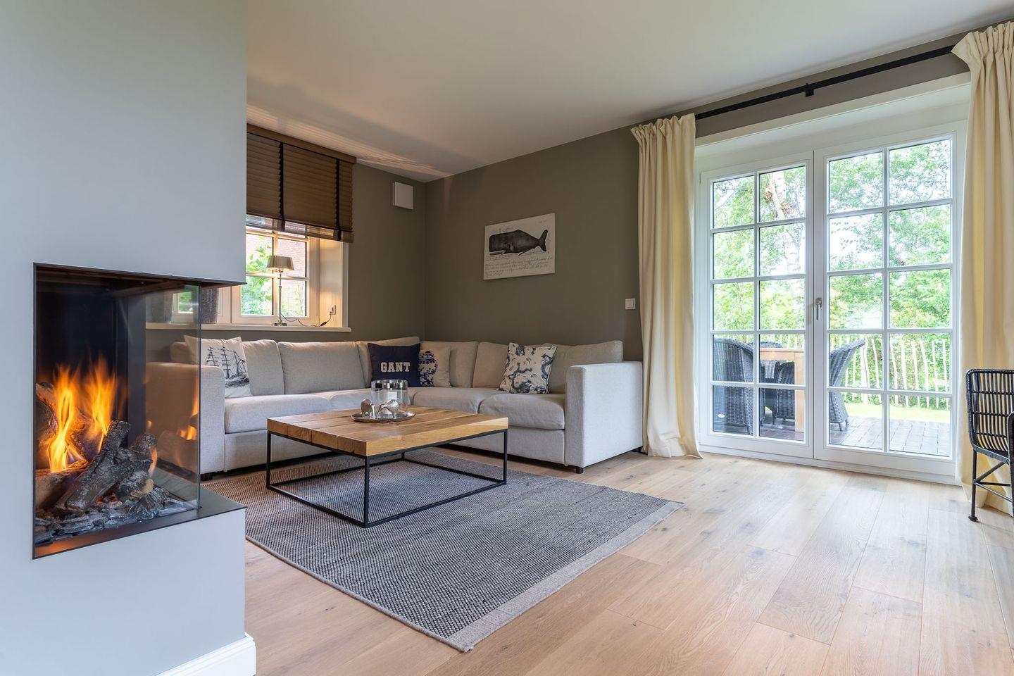 Im Erdgeschoss erwartet Sie ein lichtdurchflutetes Wohnzimmer mit Gaskamin und TV, eine offene Küche sowie ein integriertes gemütlichen Esszimmer. In diesem Bereich - wie auch in den Schlafzimmern - ist das Haus mit Eichenparkett ausgestattet. Die Küche verfügt über hochwertige Elektrogeräte und genügend Platz zum gemeinsamen Kochen. An den Wohnbereich schließt sich ein Flur sowie ein Gäste-WC an.