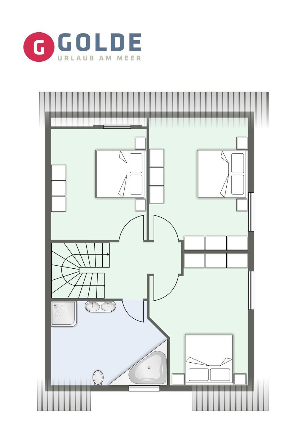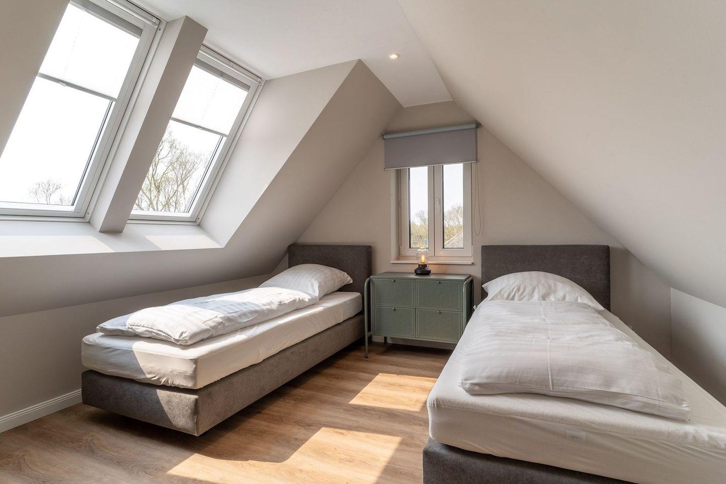 Über eine weitere Holztreppe geht es vom Flur ins Dachgeschoss. In dem großzügigen Dachgeschoss stehen Ihnen noch zwei weitere Einzelbetten zur Verfügung.