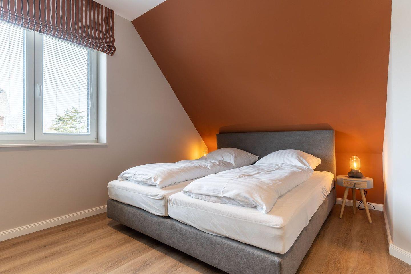 Drei Schlafzimmer mit je einem Boxspring-Doppelbett (180x200 m) sind ausgestattet mit TV und großen Kleiderschränken.