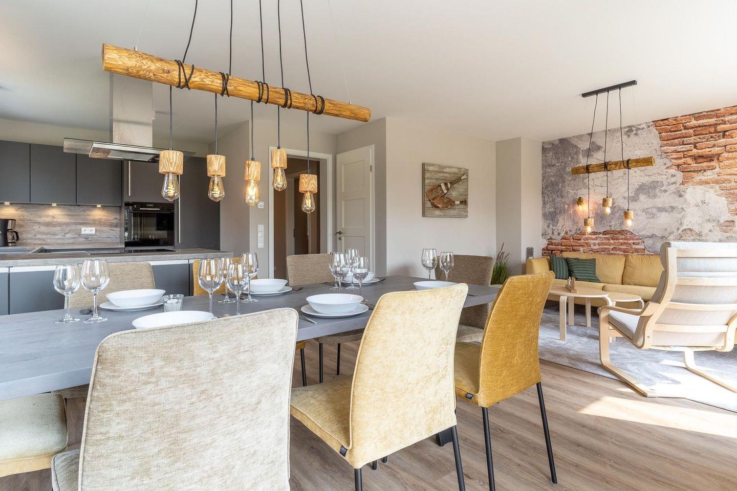 Im Erdgeschoss befindet sich der lichtdurchflutete Wohnraum mit TV, einer großen offenen Küche sowie einem stilvollen Essbereich.