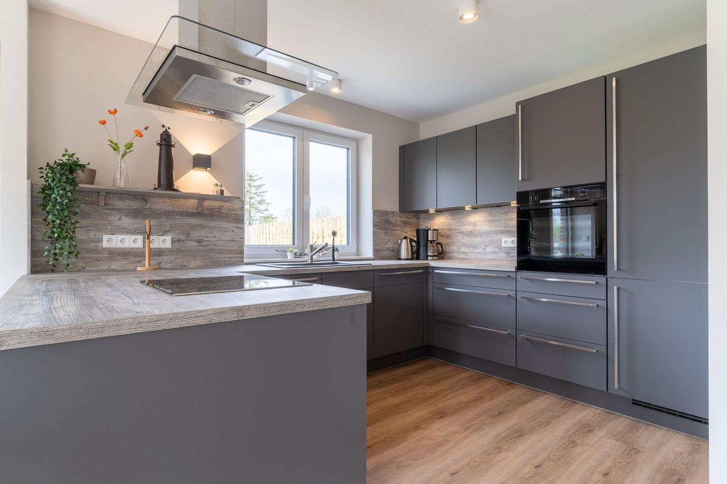 Die Küche verfügt über hochwertige Elektrogeräte und bietet genügend Platz zum gemeinsamen Kochen.