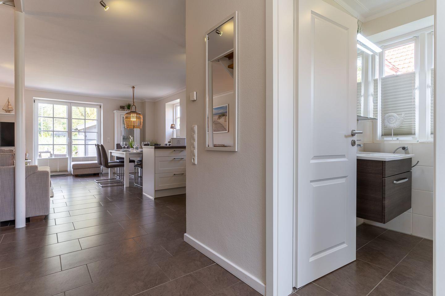 Im Erdgeschoss ist ebenso ein Flur und ein Duschbad.