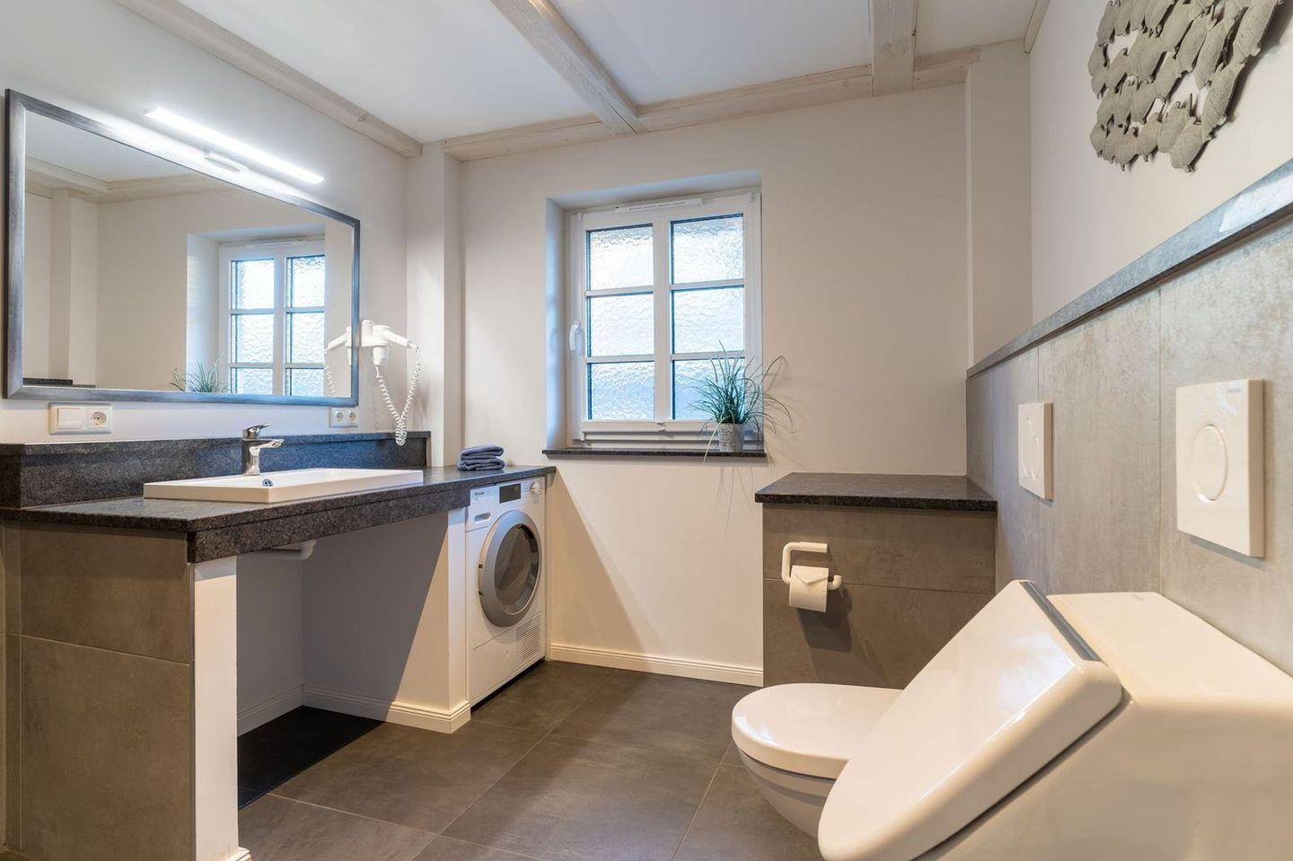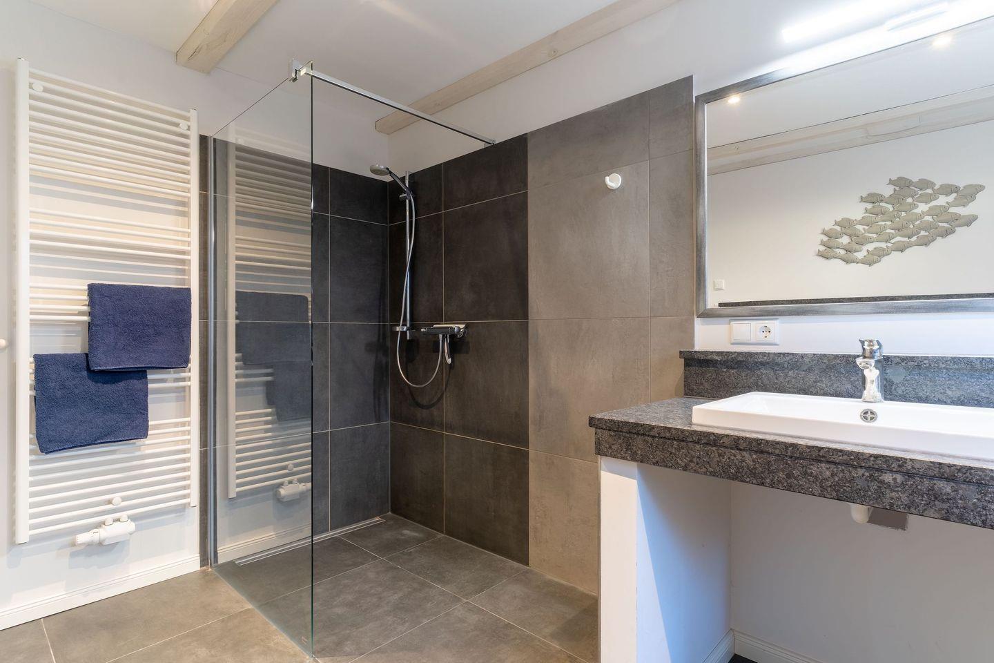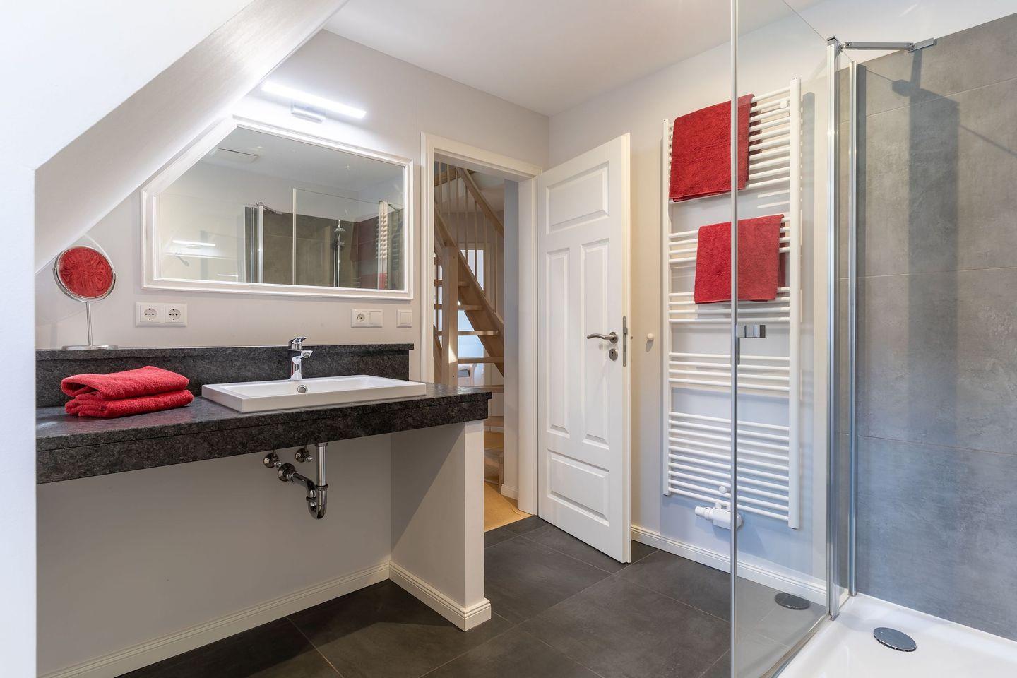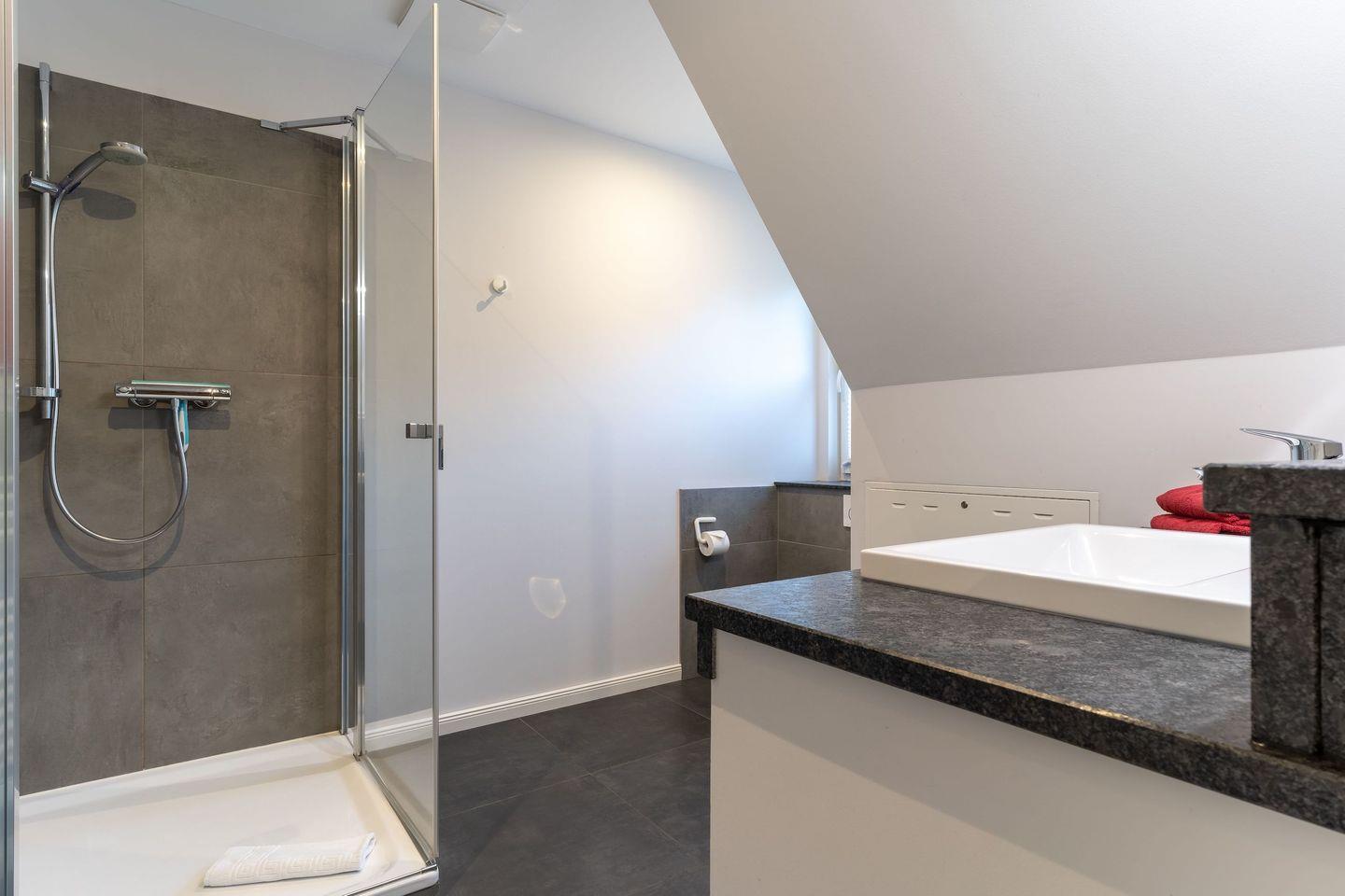 Im ersten Stock befindet sich ausserdem ein weiteres Duschbad sowie eine Sauna.