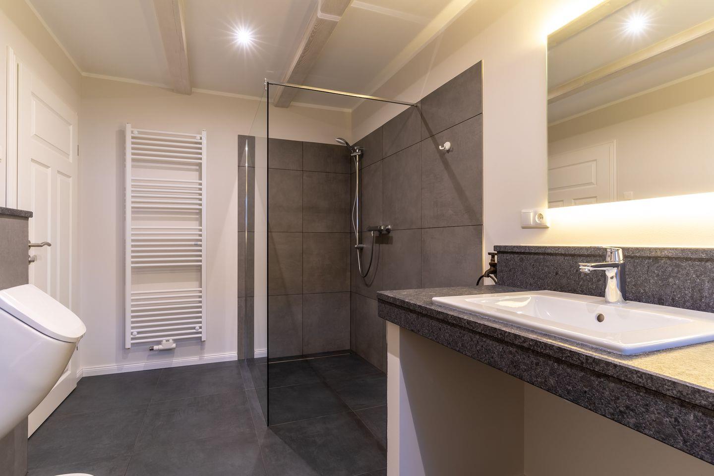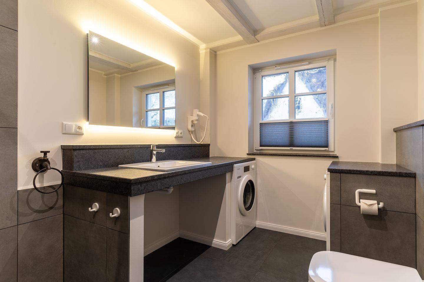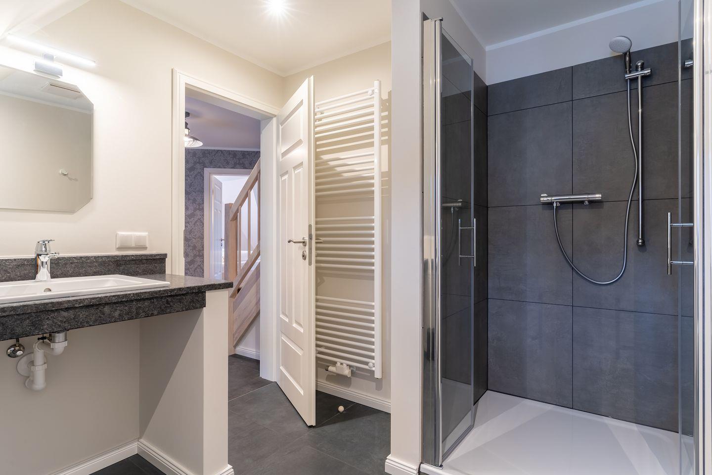 Im ersten Stock befindet sich ausserdem ein weiteres Duschbad sowie eine Sauna.