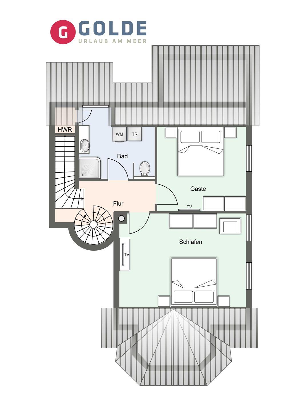 In dem großzügigen Dachgeschoss steht Ihnen noch ein weiteres Doppelbett (140x200 cm) zur Verfügung.