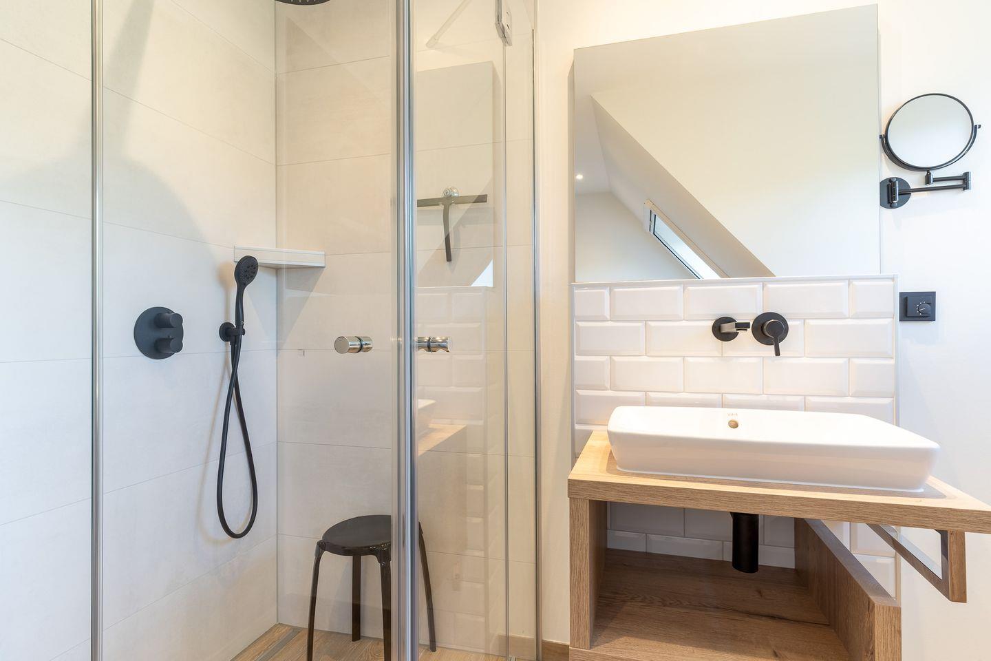 Zwei Schlafzimmer mit je einem Boxspring-Doppelbett (180x200 cm) sind ausgestattet mit TV und großen Kleiderschränken. Darüber hinaus befindet sich im Obergeschoss ein weiteres Duschbad.