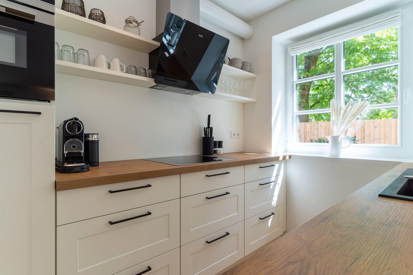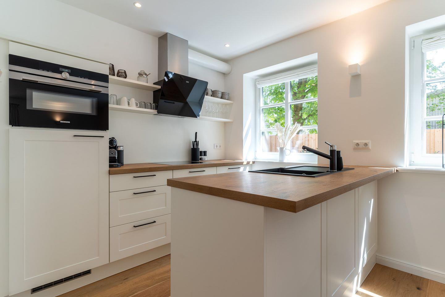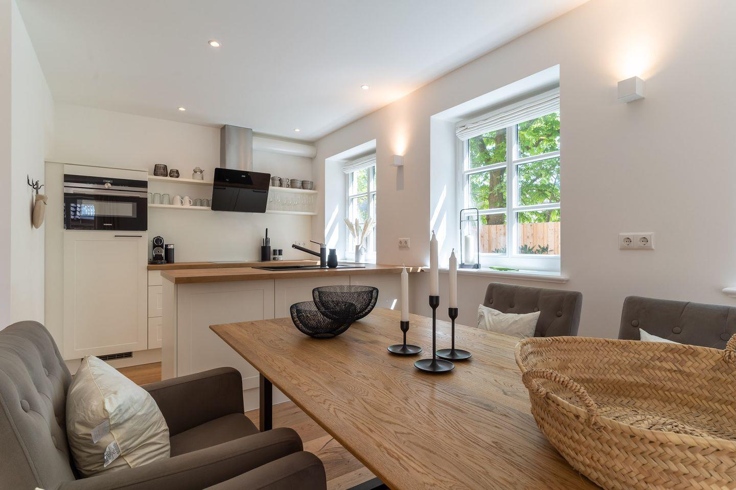 Die voll ausgestattete Küche verfügt über hochwertige Elektrogeräte, allerlei nützliches und schönes Equipment lässt bei Hobbyköchen keine Wünsche offen.
