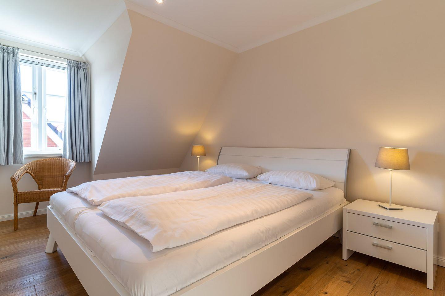 Über eine Holztreppe gelangen Sie in das Obergeschoss mit zwei großzügigen Schlafzimmern, ein Doppelschlafzimmer und ein Schlafzimmer mit zwei Einzelbetten. Die Schlafzimmer sind mit geräumigen Schränken ausgestattet, in einem finden Sie zudem einen Schreibtisch an dem es sich prima von Zuhause aus arbeiten lässt.