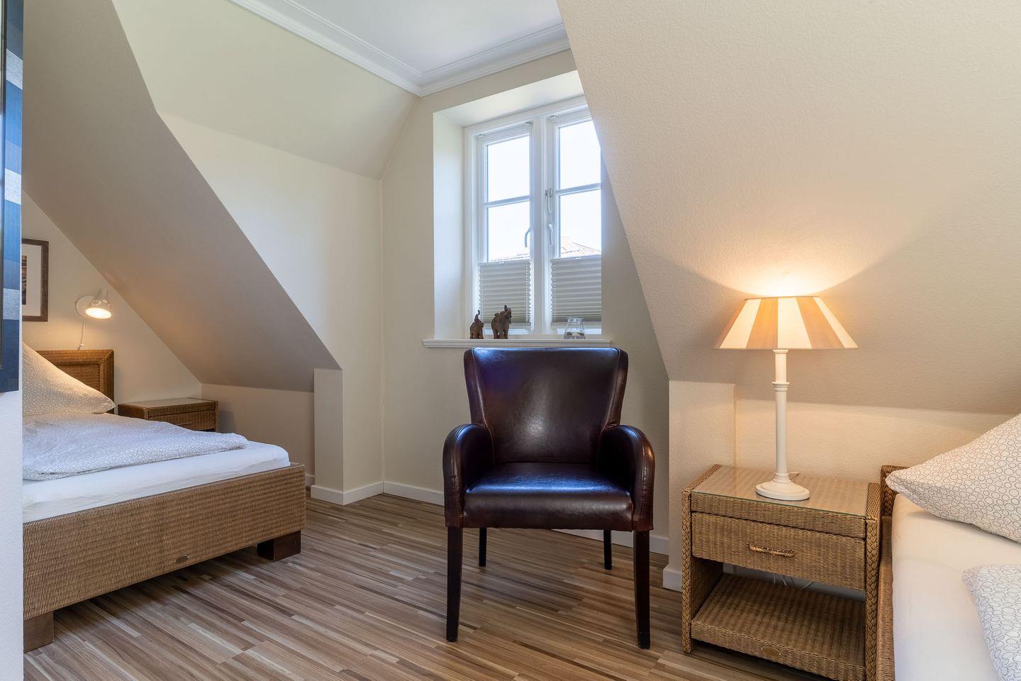 Das ausgebaute Dachgeschoss ist der perfekte Rückzugsort für eine weitere Person oder ein Paar. Hier erwartet Sie ein gemütliches Schlafzimmer mit einem Doppelbett. Auch hier sorgt ein Fenster für ausreichend Tageslicht.