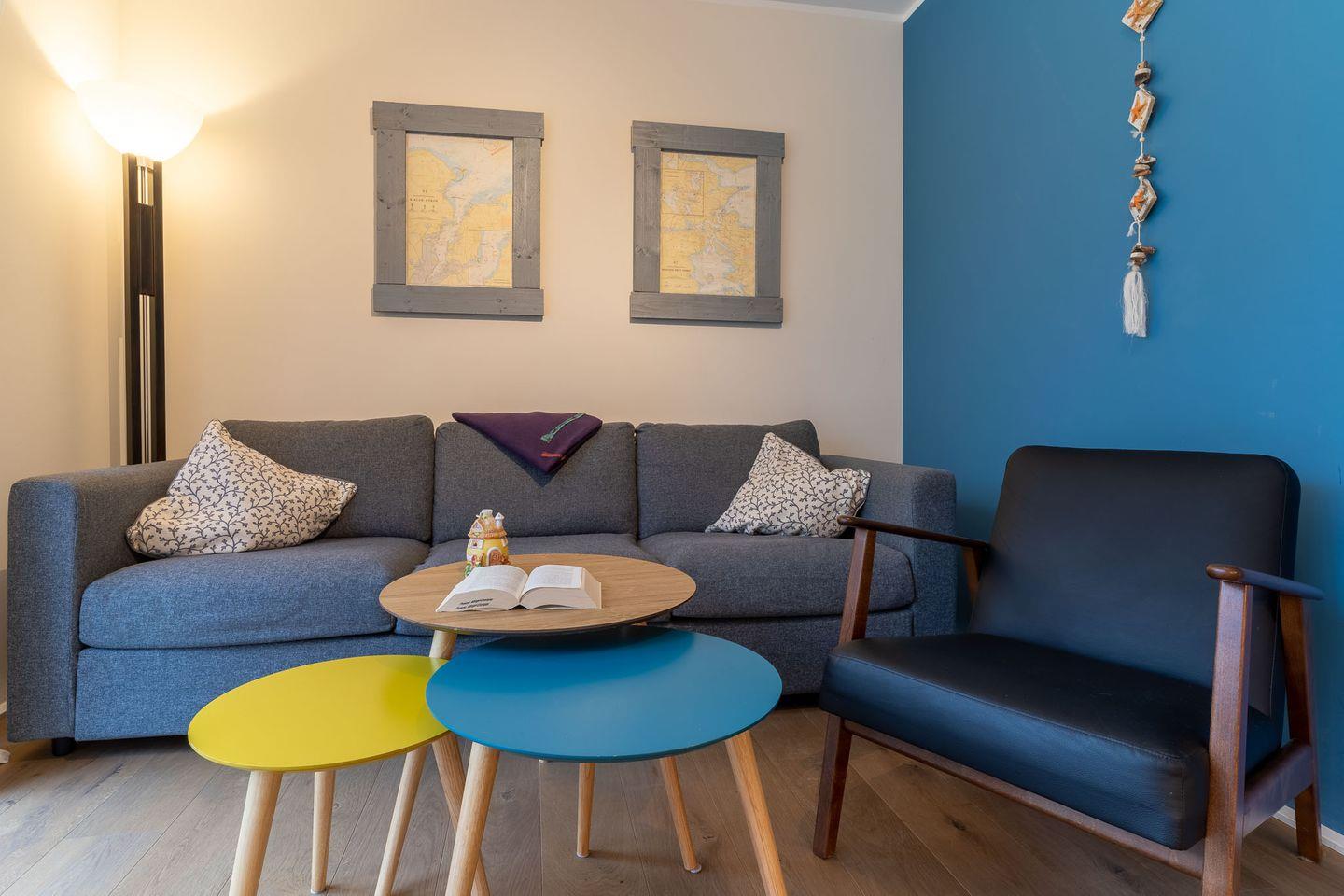 Die Wohnung verfügt auch über eine Terrasse und einen kleinen Gartenbereich, in dem Sie sich entspannen und die Sonne genießen können. Der Seedeich und der Strand sind in ca. 20 Gehminuten erreichbar, aber es gibt auch öffentliche Verkehrsmittel und Fahrräder, um dorthin zu gelangen.