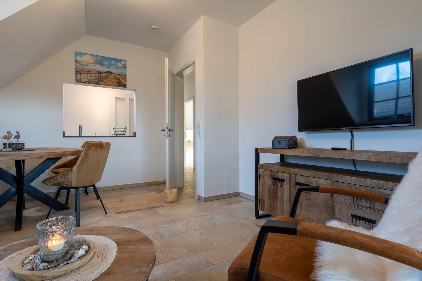 Der lichtdurchflutete Wohnraum mit TV, Sofa und einem gemütlichen Essbereich bietet jeden Komfort. Die separate Küche ist mit allen wichtigen Geräten voll ausgestattet.