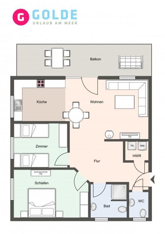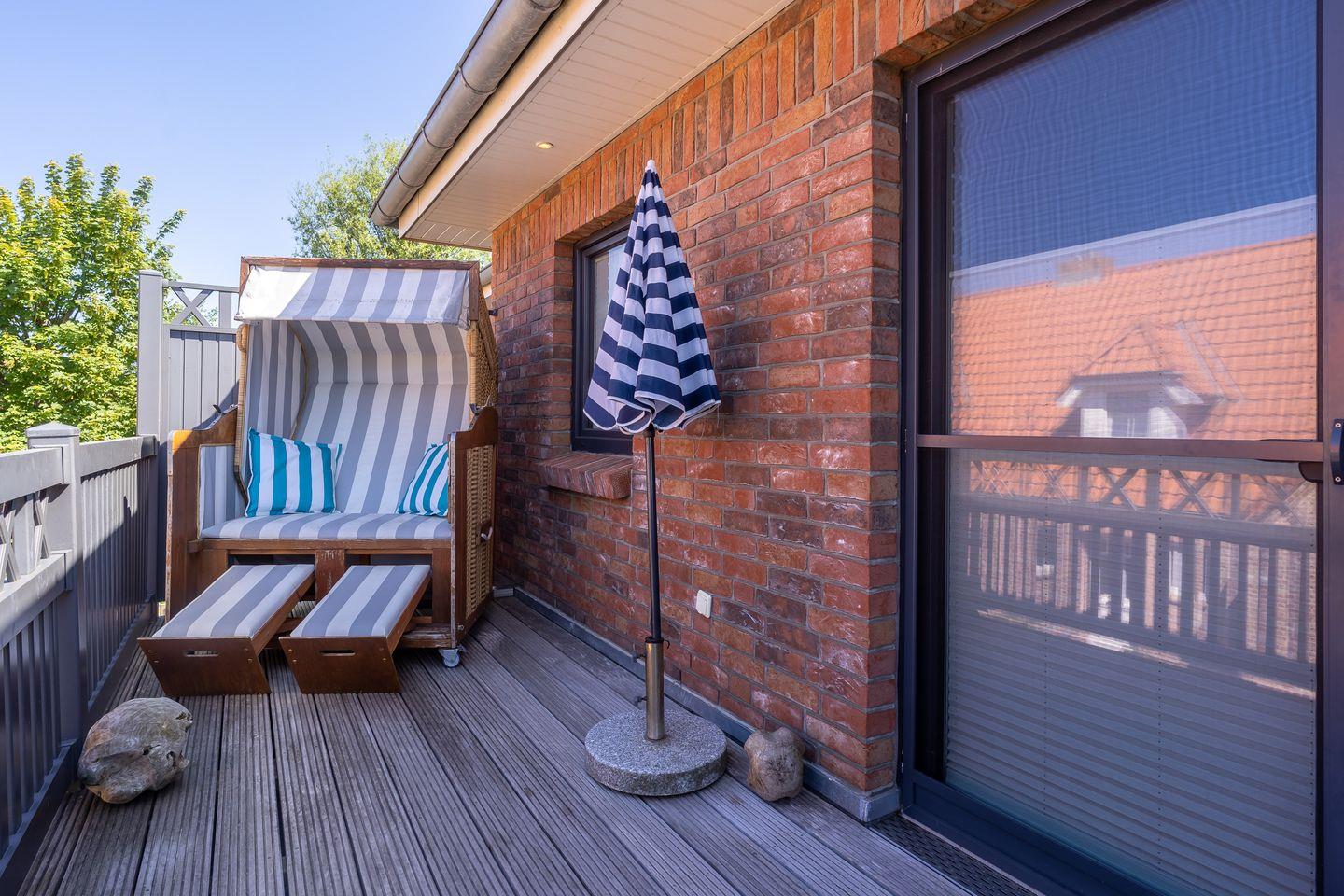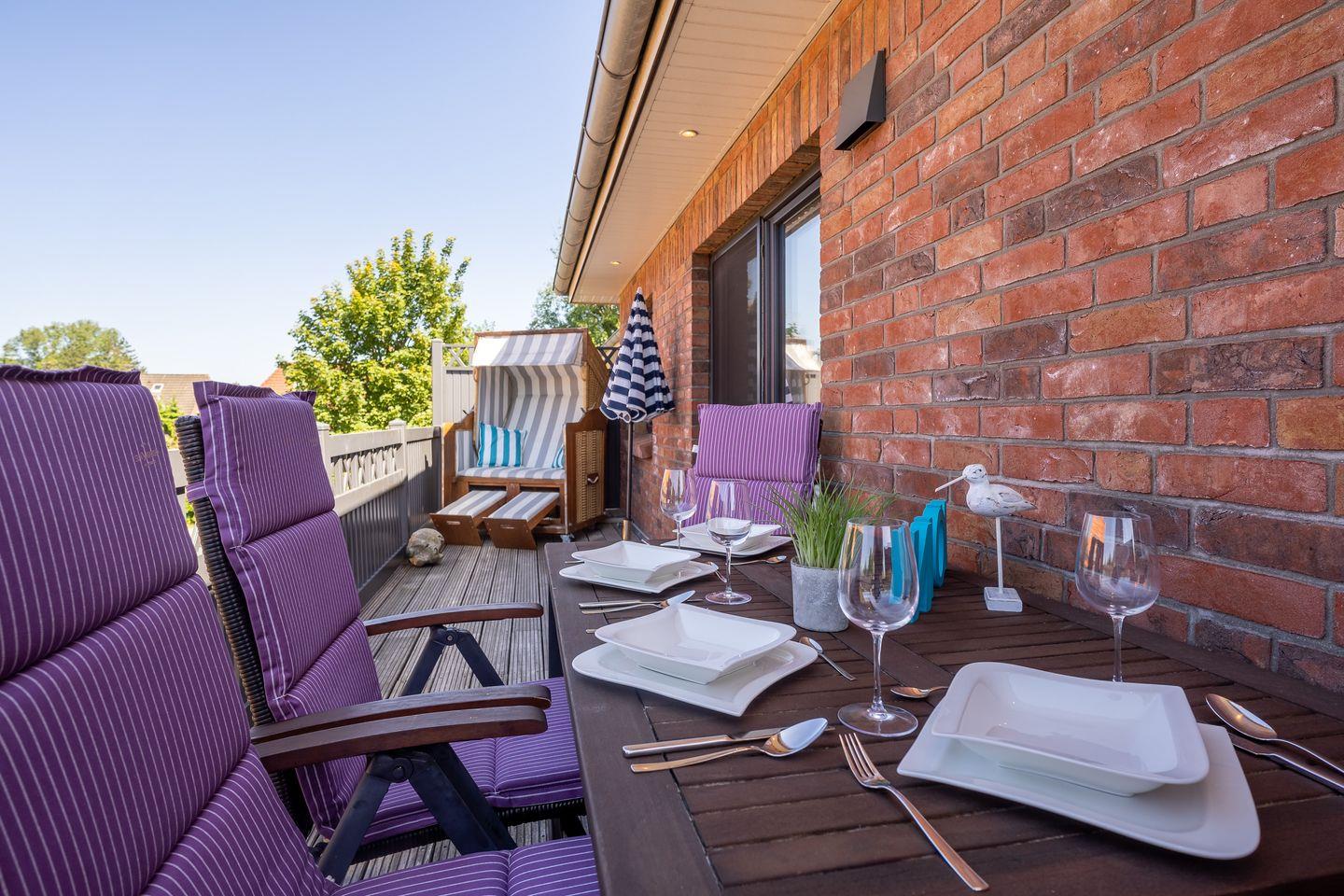 Das stylische Appartement bietet großzügigen Platz für 4 Personen. Die Wohnung hat einen großen Balkon inklusive edlen Balkonmöbeln und Strandkorb.