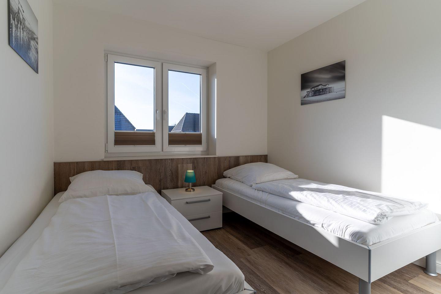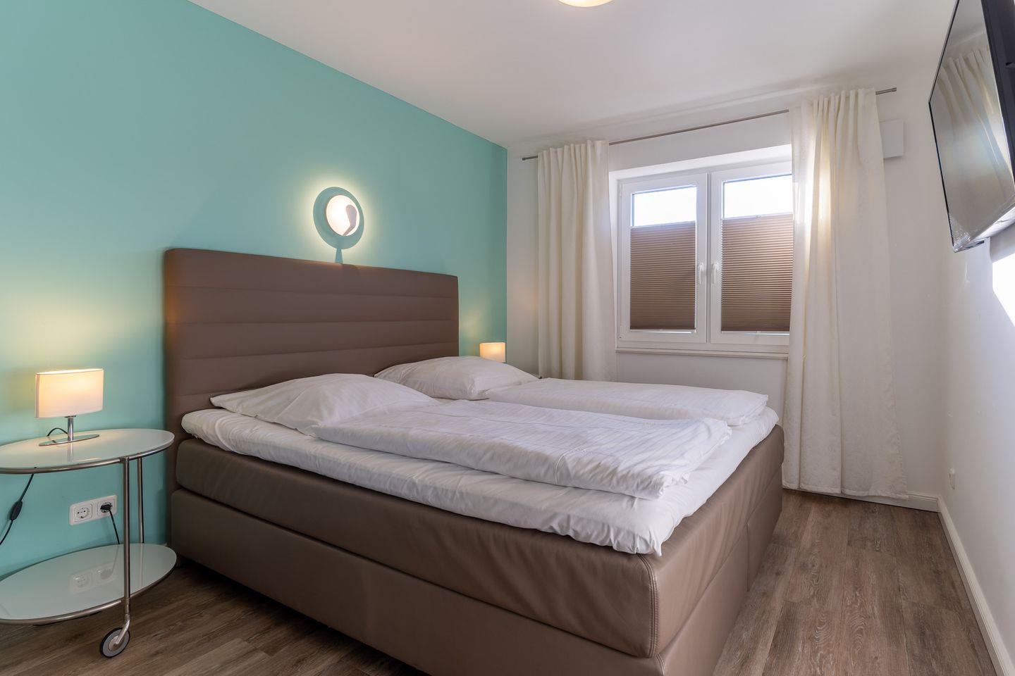 Das großzügige 70m² Appartement ist mit sehr exclusiven Möbeln eingerichtet. Ein gemütliches Wohnzimmer mit Ecksofa und Kamin laden zum Chillen ein. Die offene Wohnküche ist mit hochwertigen Geräten voll ausgestattet. Das Duschbad ist großzügig gestaltet und bietet genügend Platz für Ihre Utensilien. Außerdem ist noch ein weiteres Gäste WC vorhanden. Das Schlafzimmer mit 180er Boxspringbett und Flatscreen TV sorgen für ruhevolle Erholung. Ein weiteres Doppelzimmer mit 2 Einzelbetten bietet Platz für 2 Personen. Die Wohnung ist mit sehr viel Liebe zum Detail ausgestattet und traumhaft lichtdurchflutet.