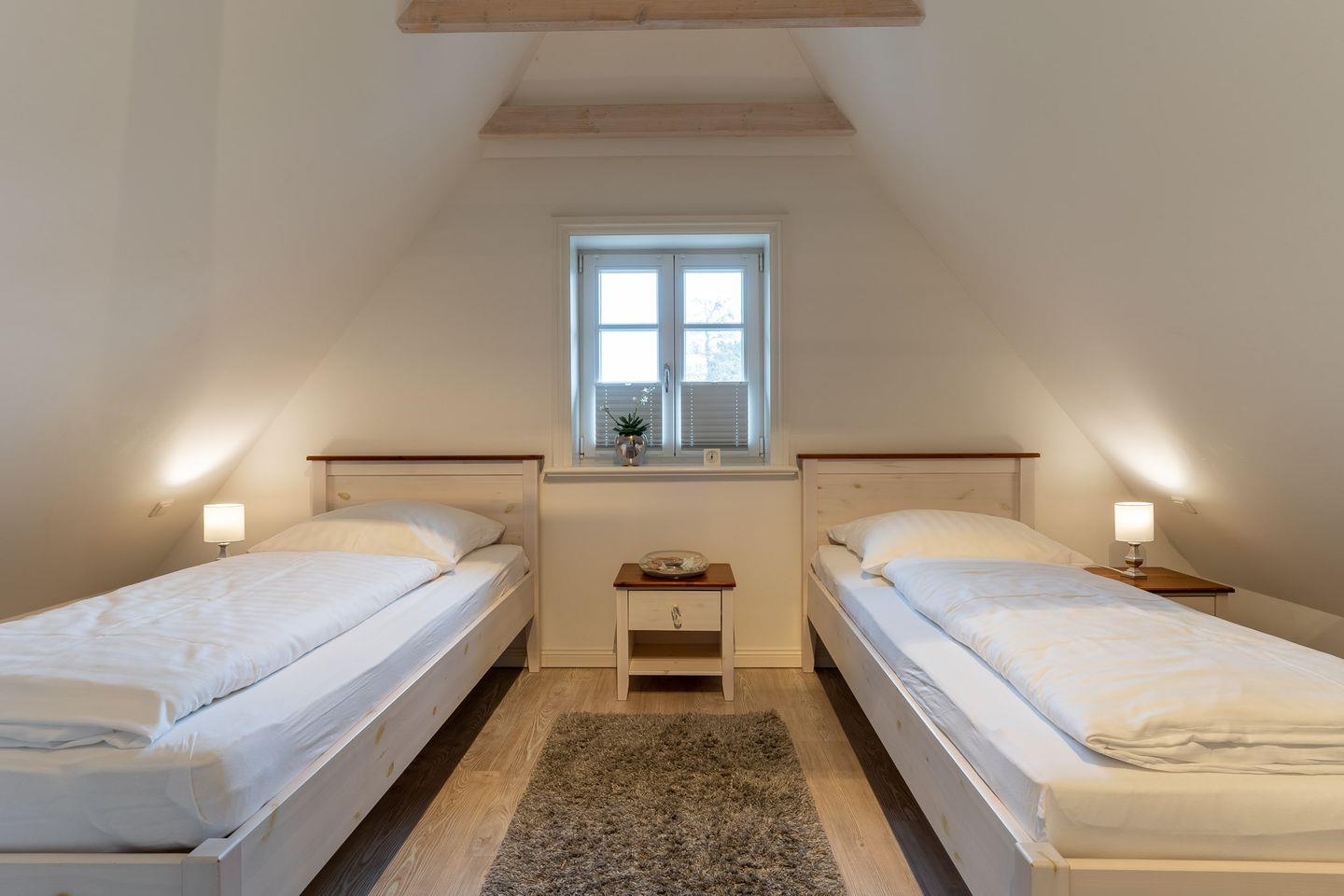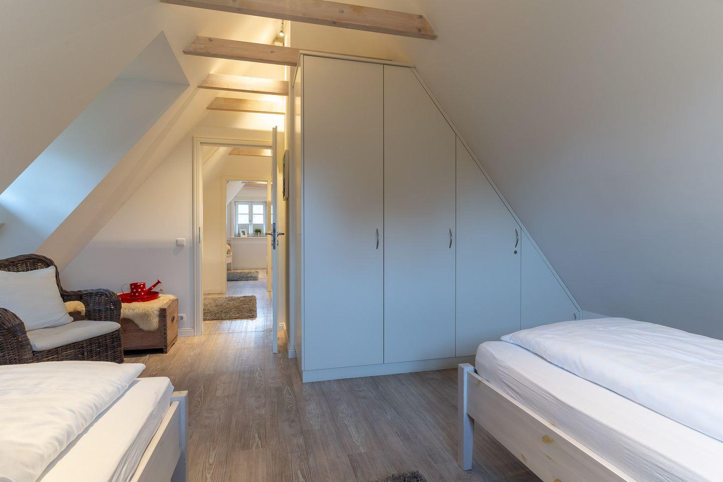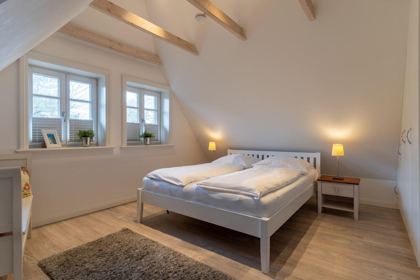 Über den geräumigen Flur gelangen Sie über eine wunderschöne Holztreppe in das Obergeschoss. Hier sind zwei weitere gemütliche Schlafzimmer. Fallen lassen und abschalten.