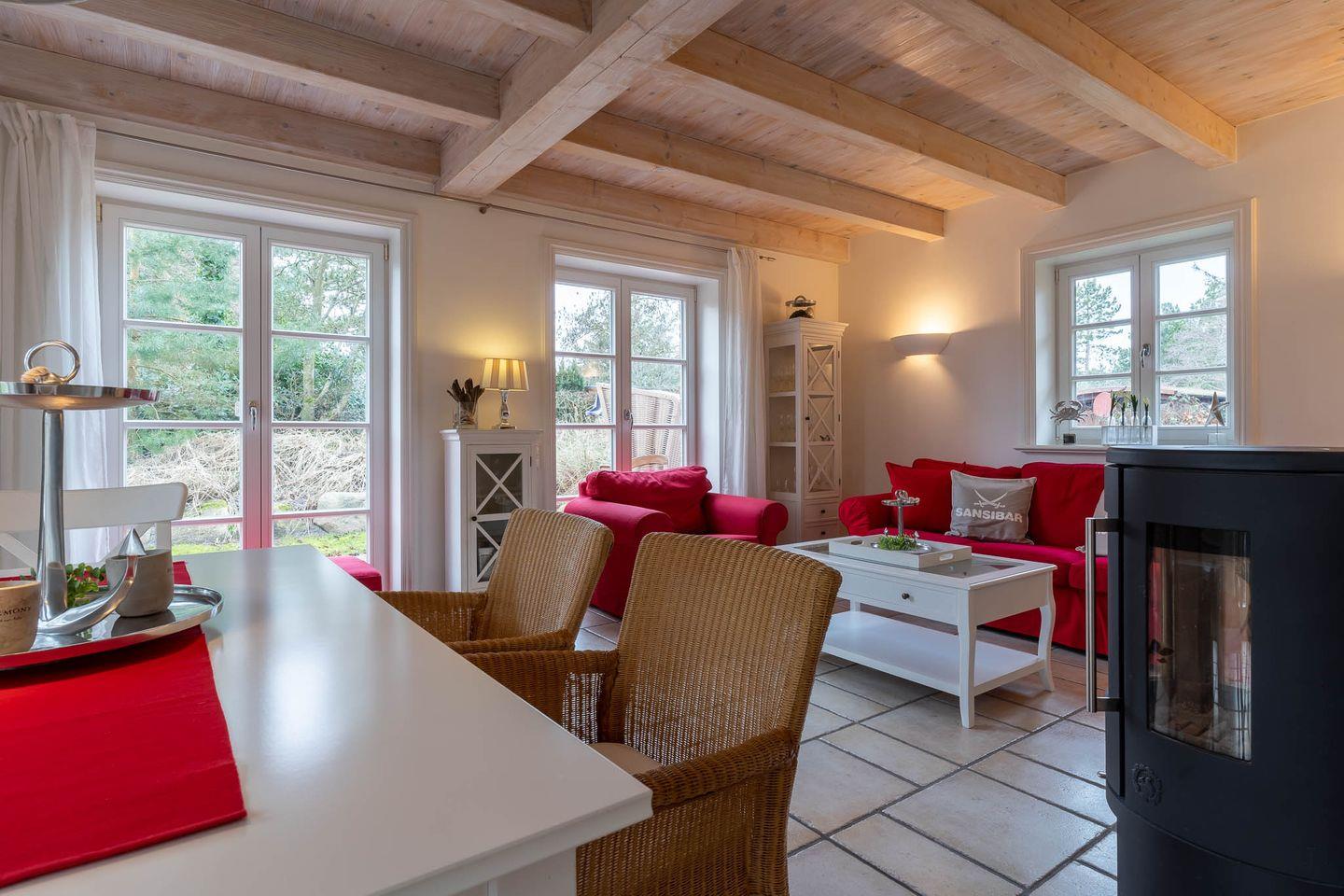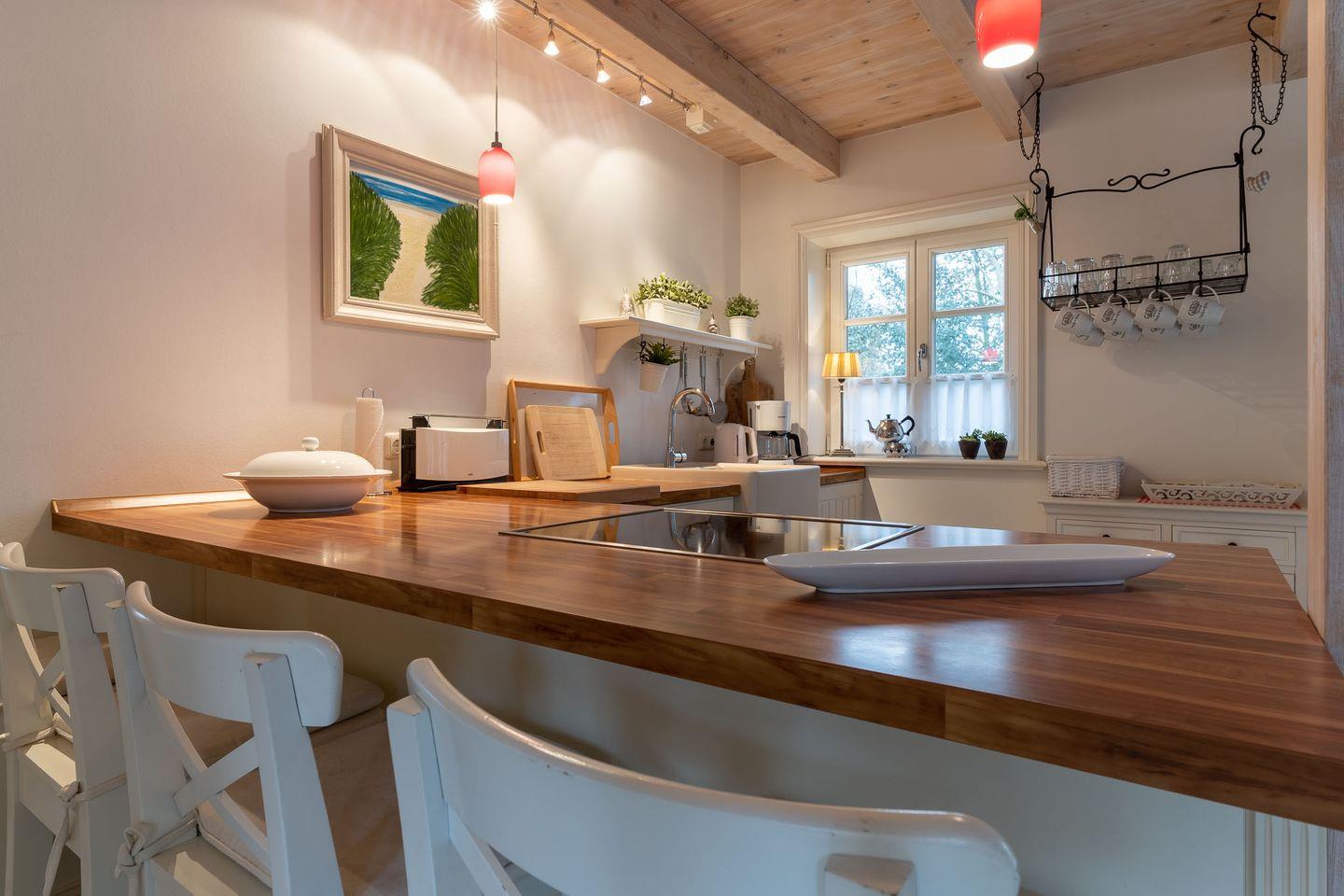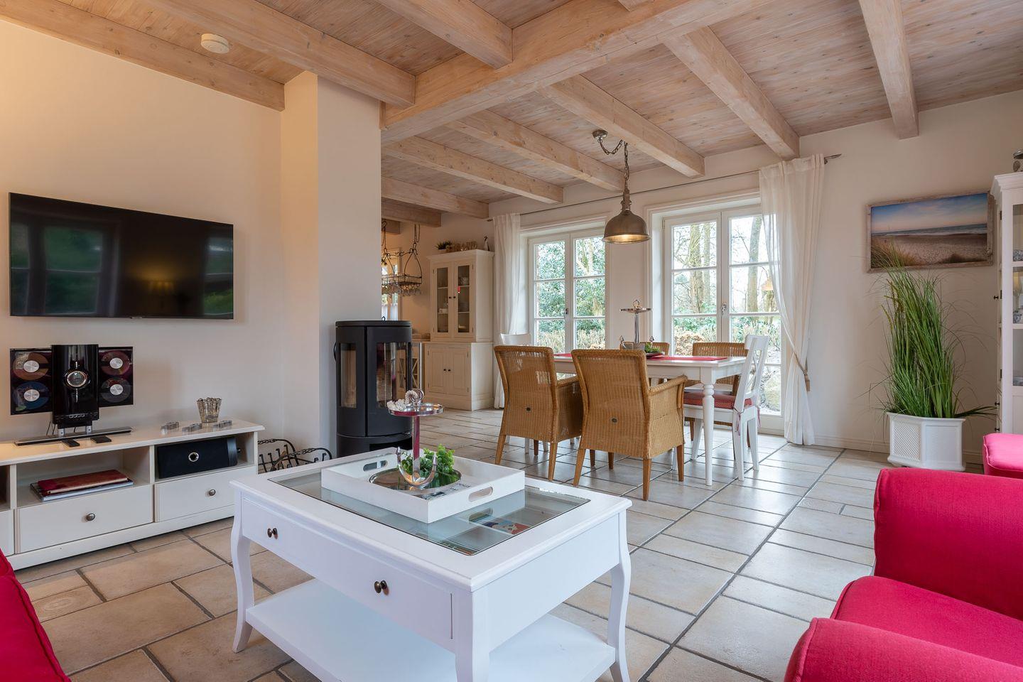 Draußen der wunderschöne Garten in direkter Nähe zum Seedeich, innen wunderschöne Atmosphäre mit persönlicher Note. Im Haus sind drei Schlafzimmer, zwei Badezimmer und ein Wohnzimmer mit offener Wohnküche für gemeinsame Momente auf der gemütlichen Couch am Ofen. Die Küche ist vollausgestattet und lädt zum gemeinsamen Kochen ein.
