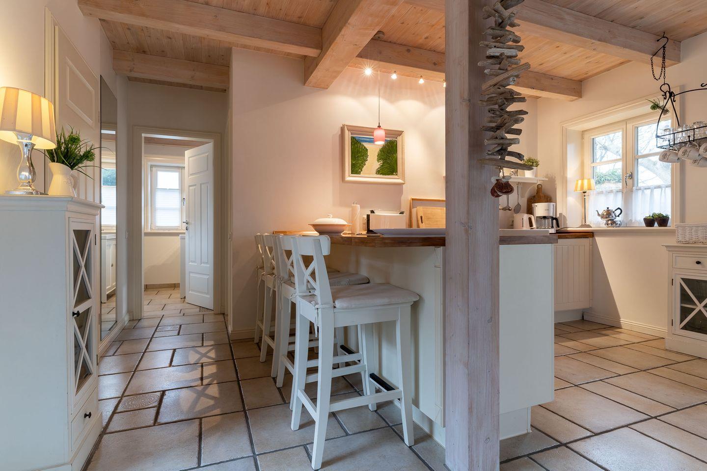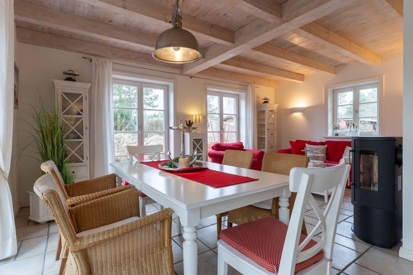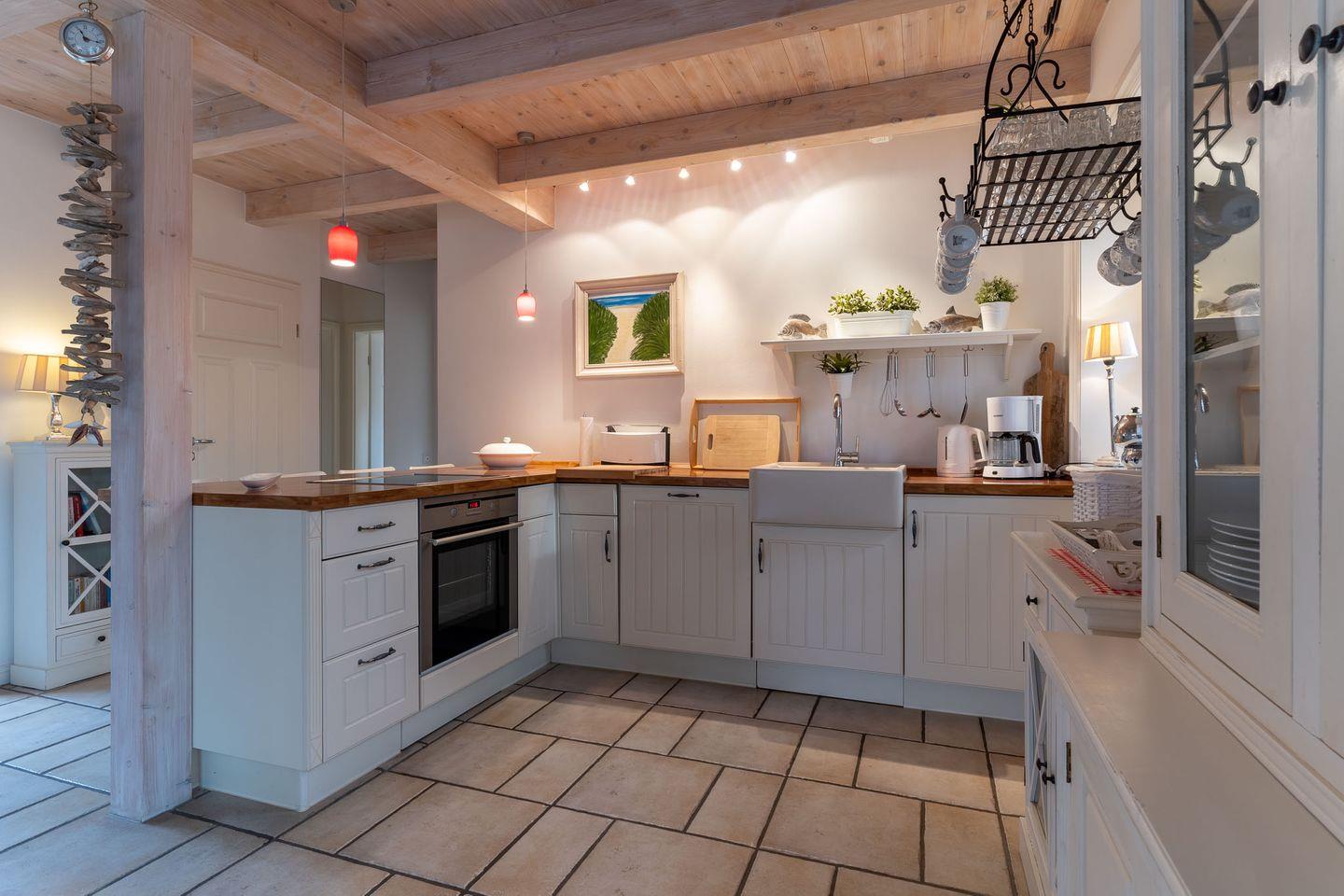 Draußen der wunderschöne Garten in direkter Nähe zum Seedeich, innen wunderschöne Atmosphäre mit persönlicher Note. Im Haus sind drei Schlafzimmer, zwei Badezimmer und ein Wohnzimmer mit offener Wohnküche für gemeinsame Momente auf der gemütlichen Couch am Ofen. Die Küche ist vollausgestattet und lädt zum gemeinsamen Kochen ein.