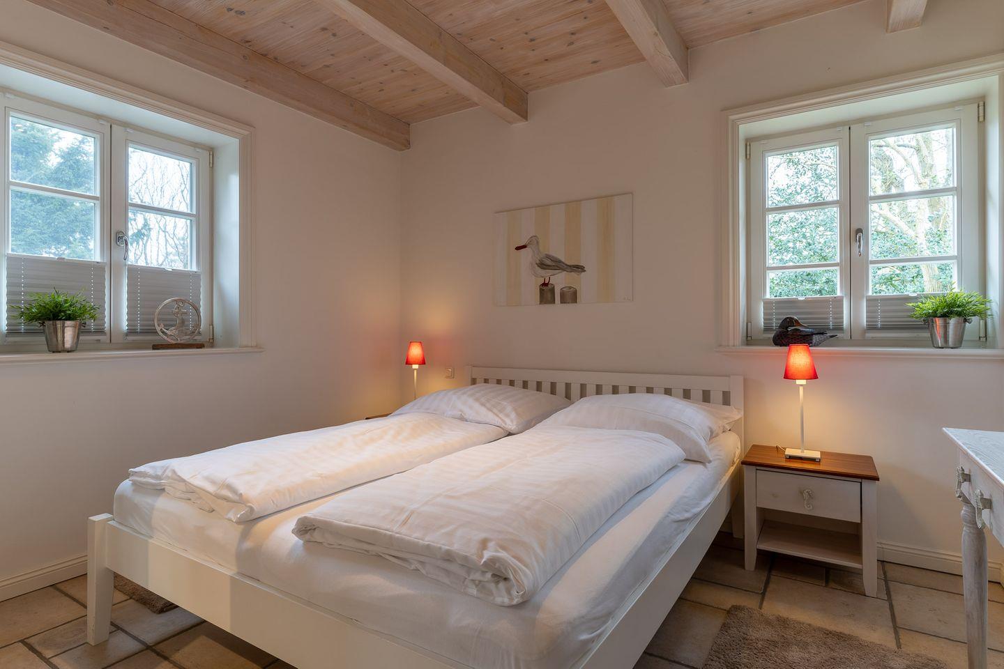 Im Erdgeschoss sorgt das traumhafte Doppelschlafzimmer für einen gesunden Schlaf. Das Tageslichtbad bietet hinreichend Platz für Utensilien.