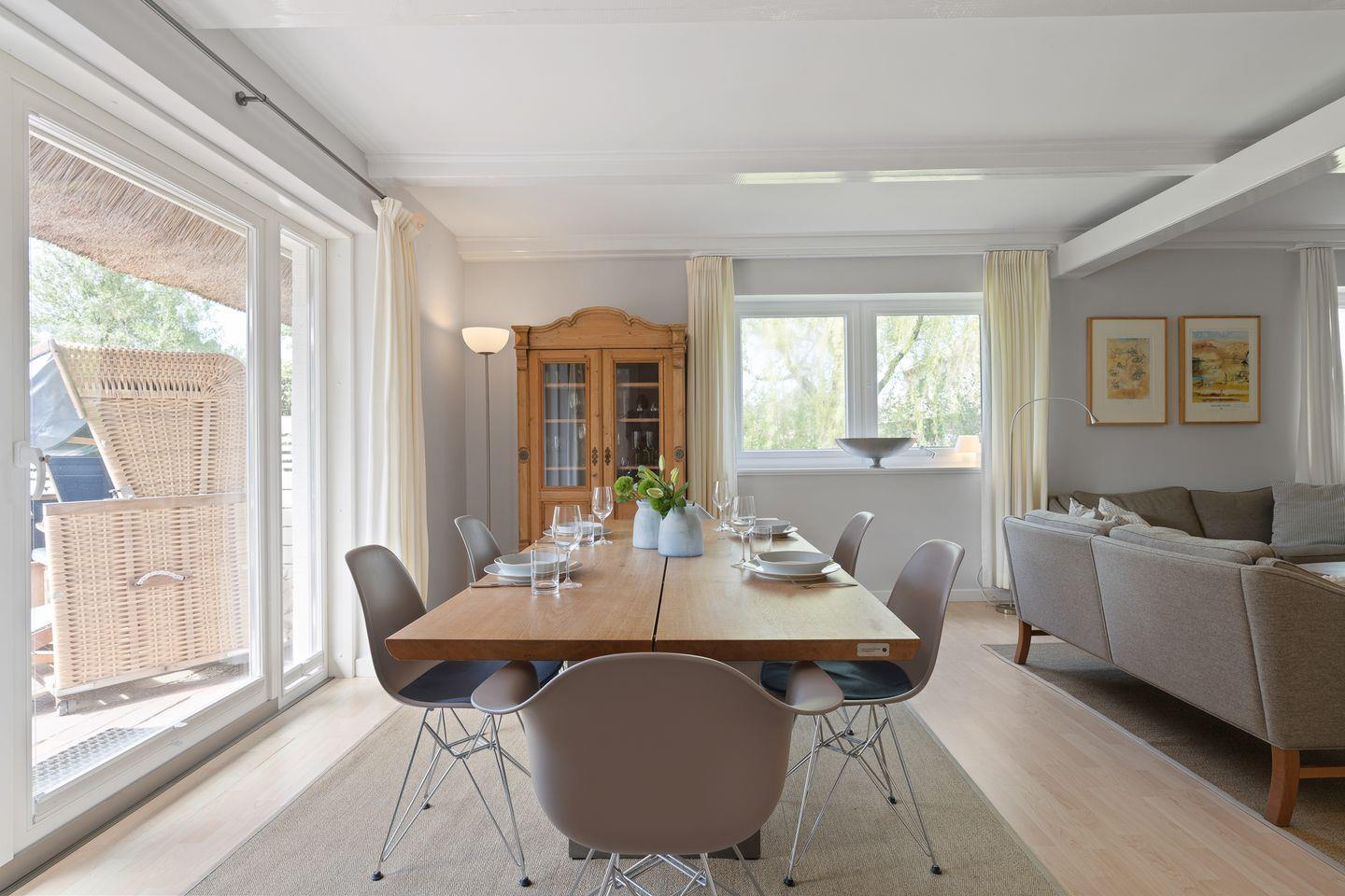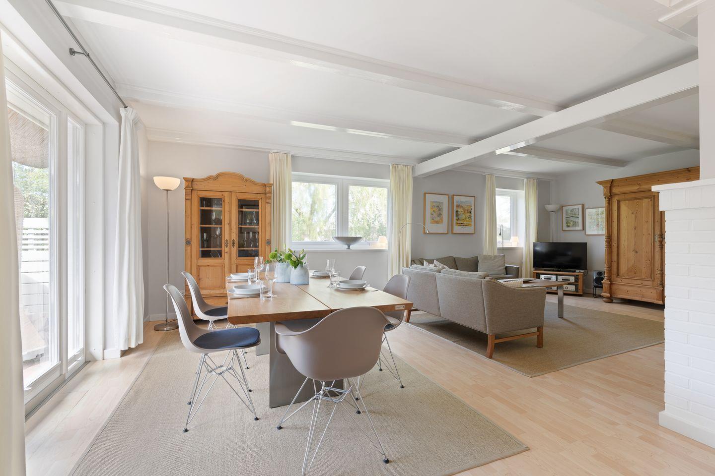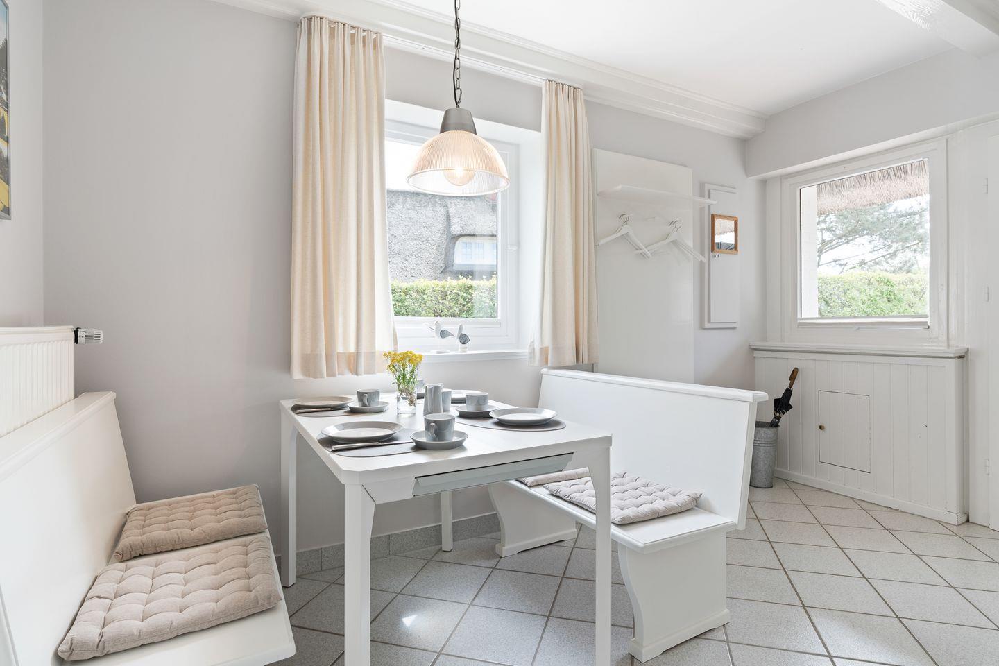Traumlage! Das lichtdurchflutete Einzelhaus unter Reet mit ca. 110 m² Wohnfläche, wurde mit Möbeln im Landhausstil eingerichtet und ermöglicht Ihnen einen traumhaften Urlaub in St. Peter-Ording - Dorf. Es bietet Platz für 1 - 5 Personen über 2 Etagen.