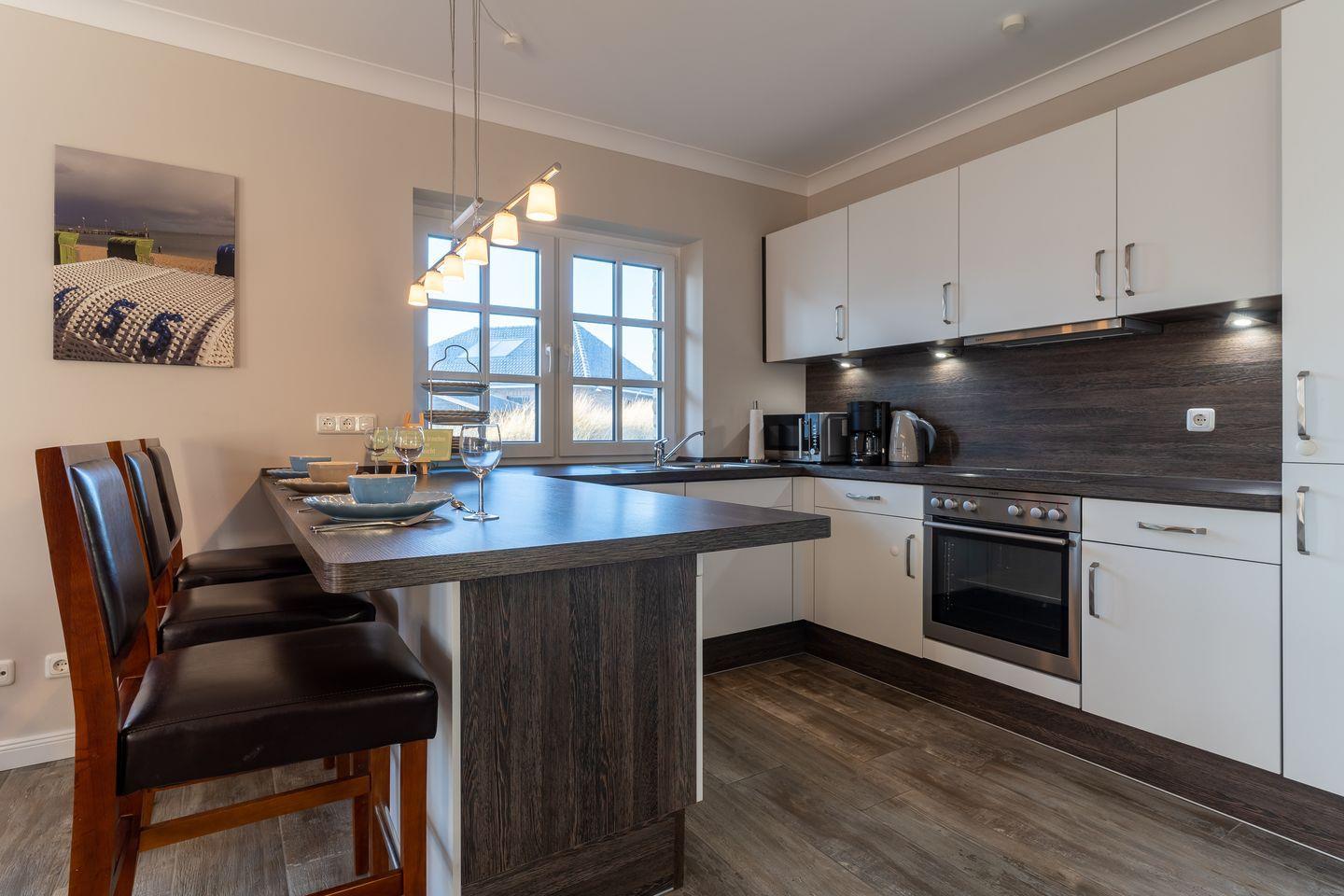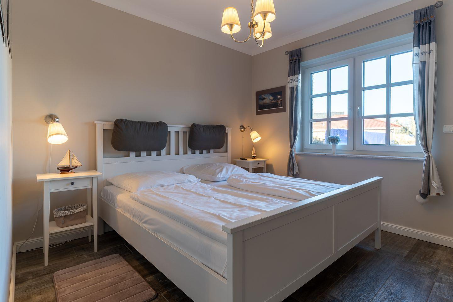 Das großzügige 60m² Appartement ist mit stilvollen Möbeln eingerichtet. Ein gemütliches Wohnzimmer mit Ecksofa und TV laden zum Chillen ein. Die offene Wohnküche ist mit hochwertigen Geräten voll ausgestattet. Das Duschbad ist großzügig gestaltet und bietet genügend Platz für Ihre Utensilien. Das Schlafzimmer mit 180er Doppelbett und Flatscreen TV sorgen für ruhevolle Erholung. Ein weiteres Doppelzimmer mit 2 großzügigen Einzelbetten 90x200cm in Etagenform bietet Platz für weitere 2 Personen. Alle Räume haben Außenrollos und sorgen für ruhevolle Erholung. Die Wohnung ist mit sehr viel Liebe zum Detail ausgestattet und traumhaft lichtdurchflutet. Das "Freetied achtern Diek" hat eine sonnige Terrasse inklusive Gartenmöbeln. Sie erreichen das Appartement über einen separaten Eingang am Haus. Ein PKW Stellplatz ist auf dem Grundstück vorhanden. W-Lan ist vorhanden!