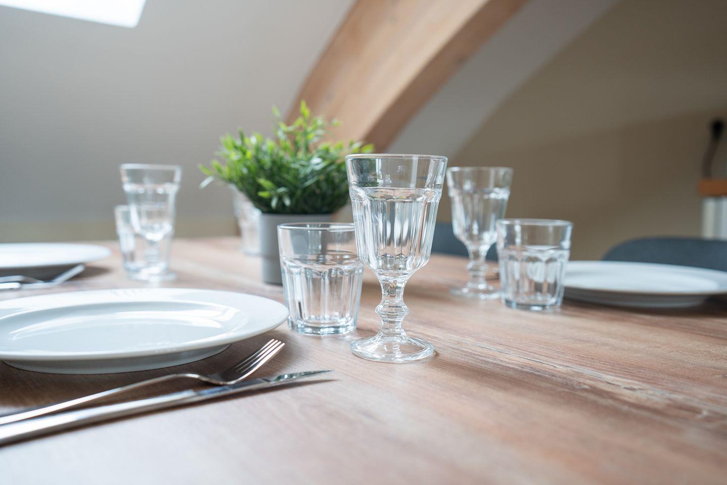 Die Wohnung befindet sich im ersten Obergeschoss mit einem großzügigen Wohnraum mit TV und einer modernen Wohnküche. Die Küche verfügt über hochwertige Elektrogeräte, eine Pad-Kaffeemaschine und eine Filter-Kaffeemaschine. An den Wohnbereich schließen sich ein Duschbad, sowie zwei Schlafzimmer mit jeweils einem Boxspringbett (1,80 x 2,00 m) und 1x mit TV an. Vom Wohnzimmer gelangen Sie auf einem großzügigen Balkon. Hier können Sie sich entspannen und die Seele baumeln lassen.