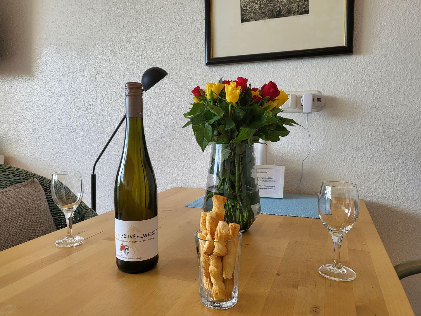 Eine Kapselkaffeemaschine, kompatibel mit Tchibo-Kapseln, gehört ebenfalls zur Ausstattung.