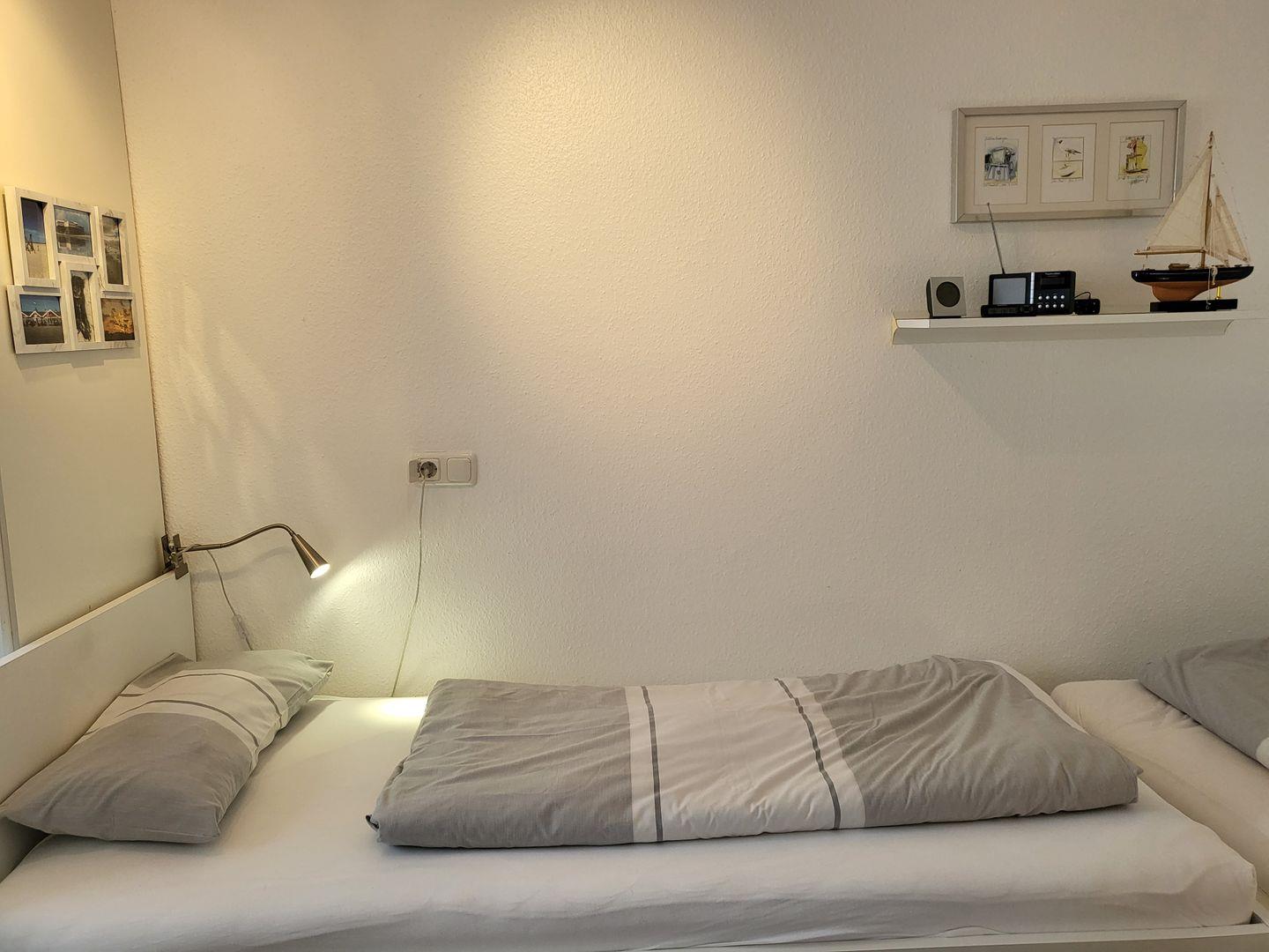 Im separaten Schlafzimmer stehen 2 Einzelbetten zur Verfügung.