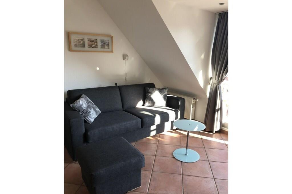 Top floor apartment in a historic thatched house, centrally located in the village. Now also with WiFi! New mattresses and new sofa bed in the living room!
