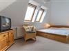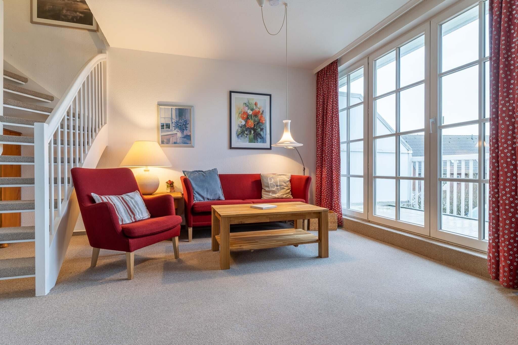 Den venlige 3-stjernede lejlighed, fordelt på to etager, er cirka 72 kvadratmeter stor, velegnet til 4 personer og ligger på husets øverste etage. Den består af en komfortabel stue, balkon, tekøkken og spiseplads, to soveværelser og to badeværelser. Stuen, balkonen, badeværelset og soveværelset er i ét plan (øverste etage), det andet soveværelse er ovenover på loftet (også det andet lille brusebad). Der er dobbeltsenge, der måler 180 x 200 cm i begge soveværelser. I stuen, med et komfortabelt polstret opholdsområde, er der fladskærm, stereoanlæg med cd-afspiller. Når det kommer til indretning, blev der lagt særlig vægt på komfort og komfort. Fra stuen kommer man også ind på altanen med havemøbler af tilstrækkelig størrelse. Altanen er på vestsiden af lejligheden og er solrig fra middag til aften. Højdepunkter inkluderet: Alle forbrugsbaserede energiomkostninger, sengelinned, håndklæder og slutrengøring WiFi Parkeringsplads