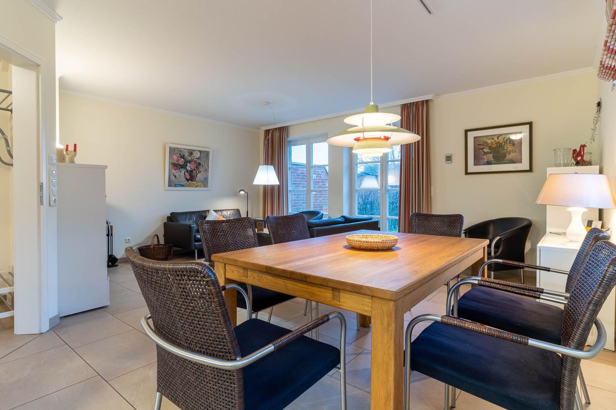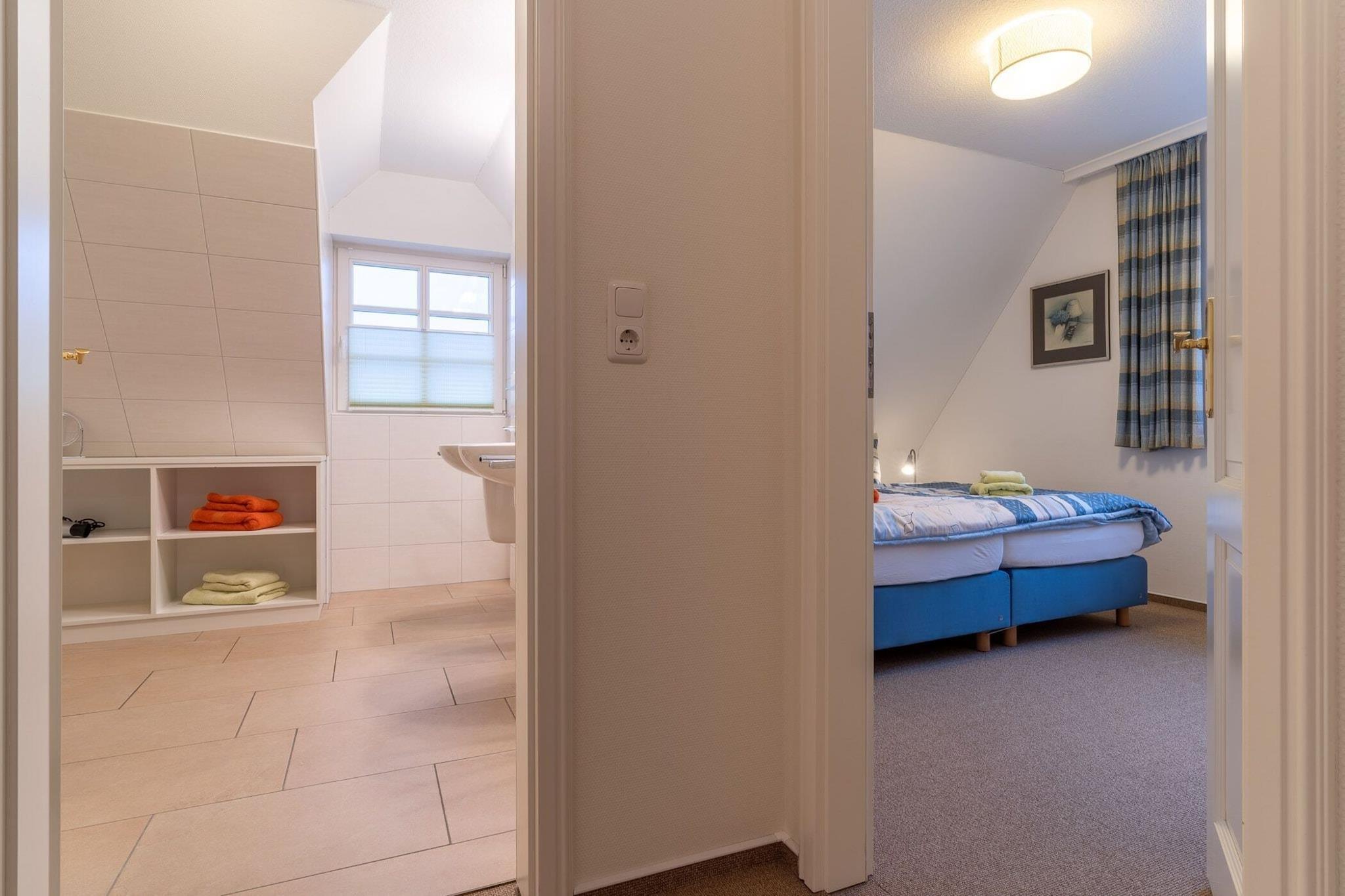 På tre plan (ca. 91 m²) præsenterer dette dobbelthus til 6 personer sig fra den bedste side. Moderne møbleret, er denne lejlighed ikke kun attraktiv for familier; den såkaldte best-ager-generation føler sig også hjemme her. I stueplan ligger den hyggelige stue med dansk. Pejs og stor fladskærm med dvd-afspiller og stereoanlæg med cd-afspiller. Spisebordet og det veludstyrede køkken af høj kvalitet inviterer til at lave mad og spise sammen. Der er desuden badeværelse med bruseniche i stueetagen. Vaskemaskinen står ved siden af gasfyret i depotrummet. Værelserne til drømme er placeret på første sal. Det blå rum, det røde værelse med en ekstra fladskærm på væggen og det store, lyse badeværelse med bruseniche, to håndvaske og en håndklædetørrer. Fra det tredje soveværelse på øverste etage har du en smuk udsigt fra Velux-vinduerne over diget og Ordingerstrand til Vesterhavet.